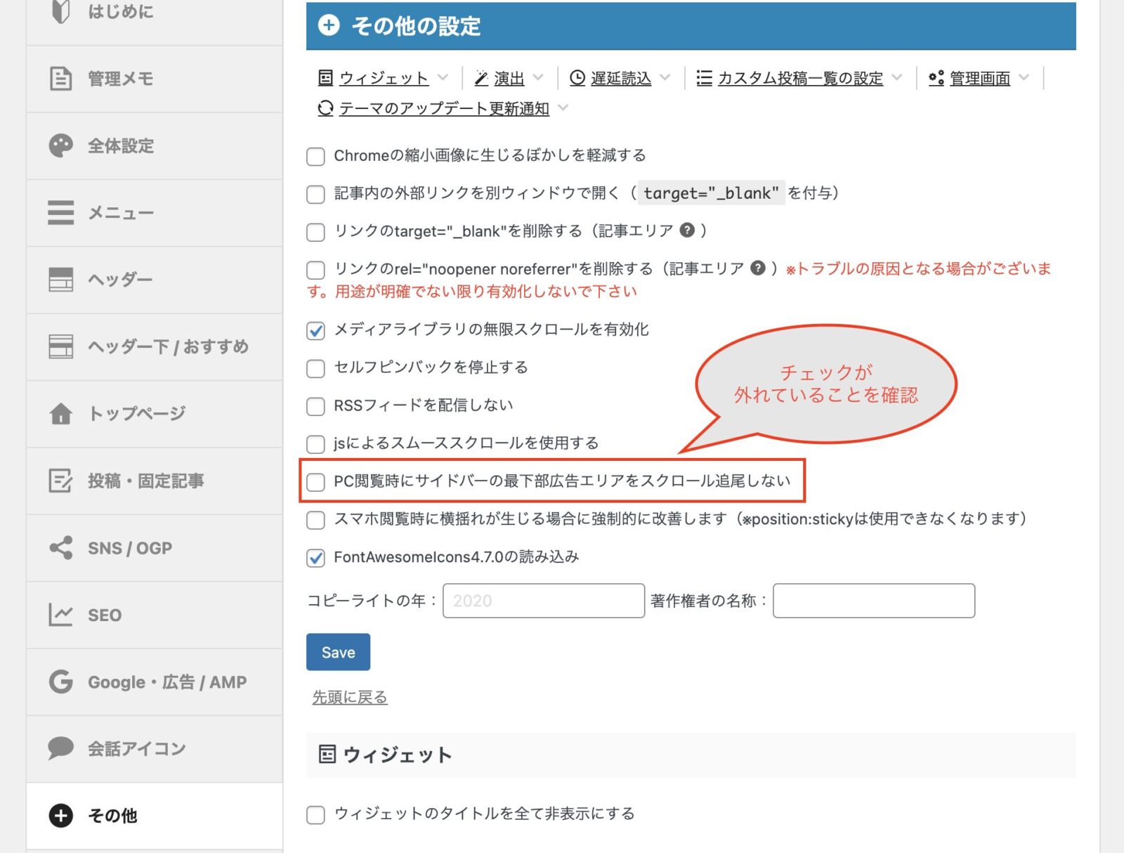 ⚠️盲点:AFFINGERの「サイドバー広告追尾」設定で挙動が変わる