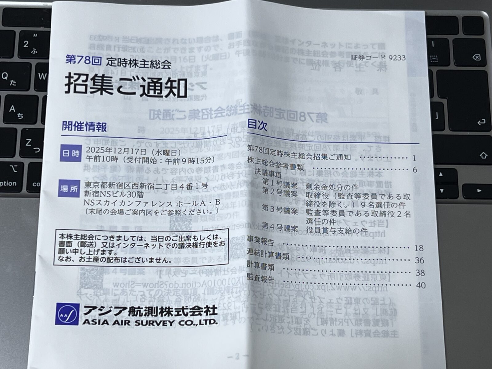 🎫「お土産はございません」と書かれた株主総会に行ってみた|アジア航測 第78回定時株主総会レポ(2025年)