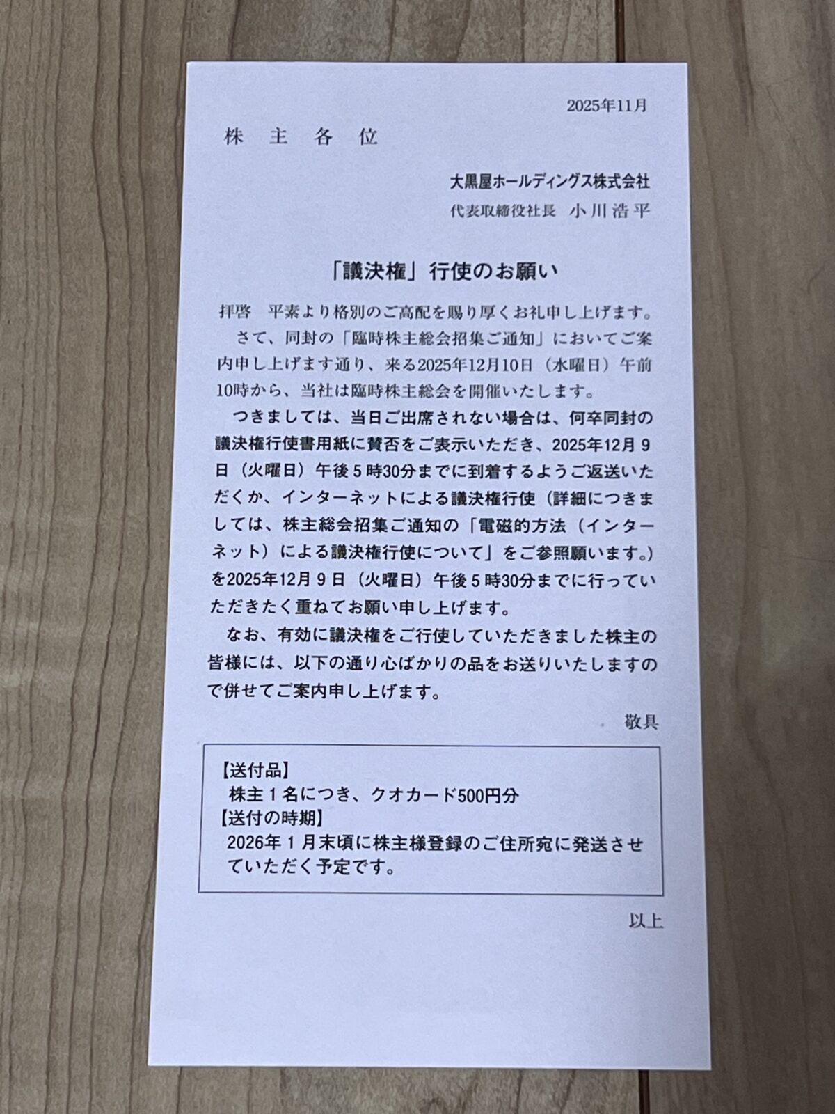 ✅ 大黒屋ホールディングスの「議決権行使QUOカード」とは?