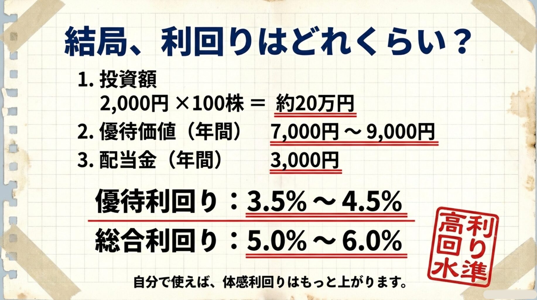- 配当+優待の総合利回りで考えられる人