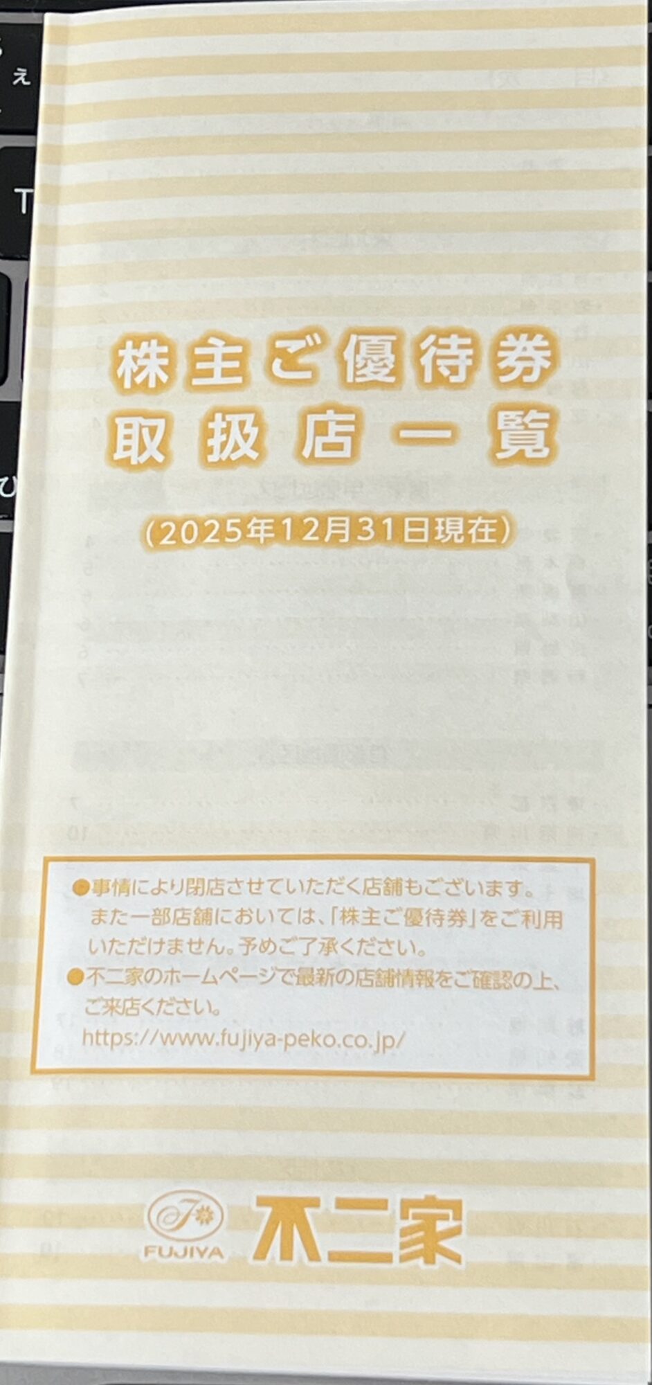 | 株主ご優待券取扱店一覧 | 2025年12月31日現在版 |