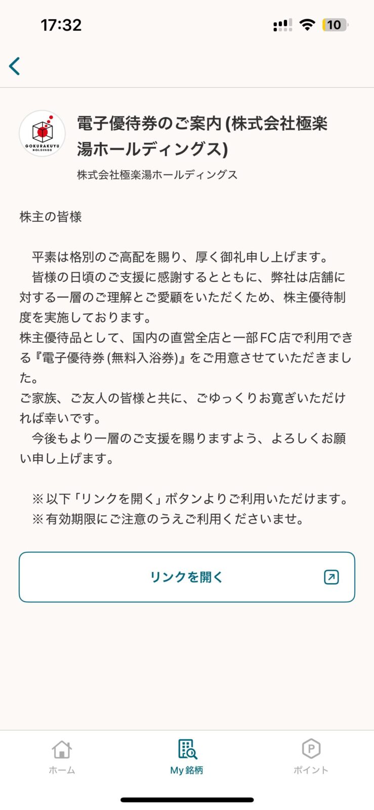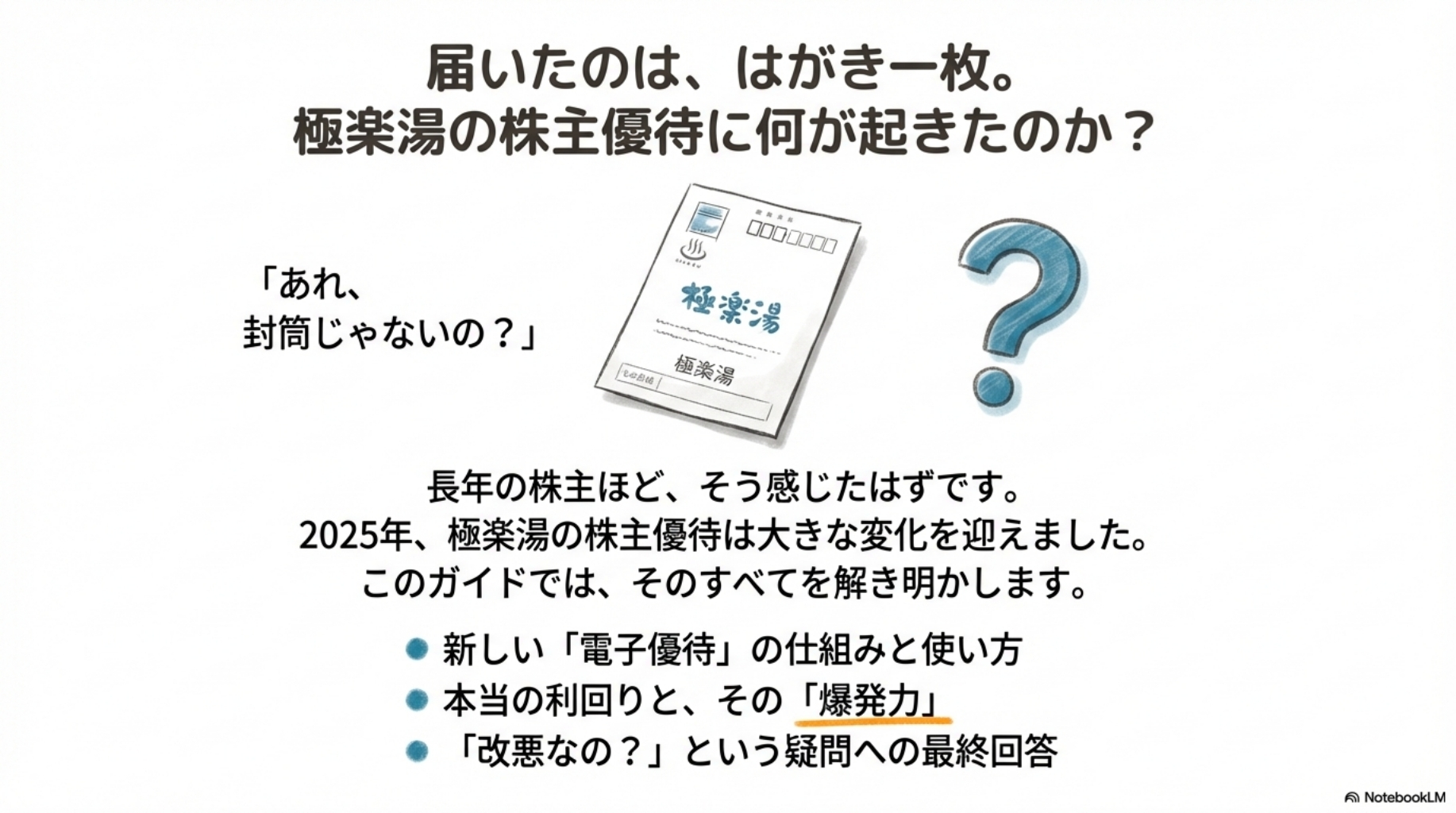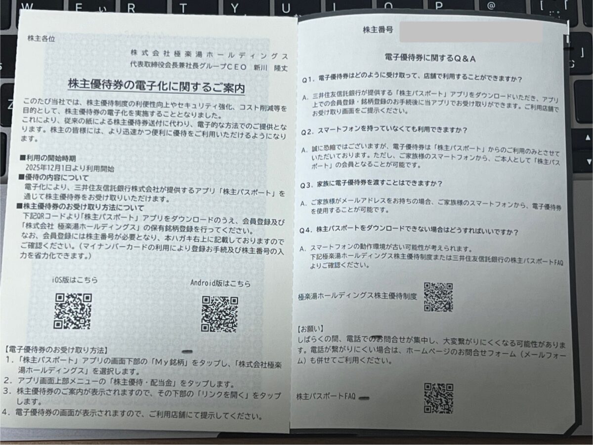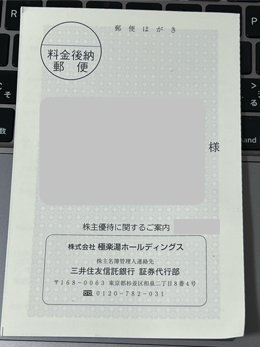 スーパー銭湯チェーン最大手「極楽湯ホールディングス」から、ついに株主優待の案内が届きました!