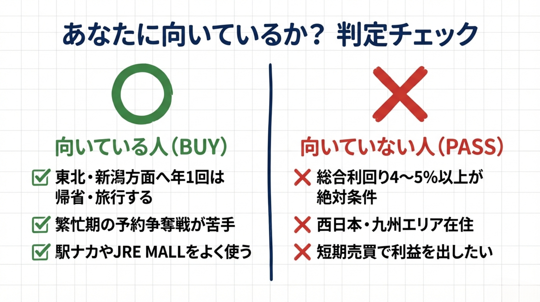 • 優待を使い倒せるかどうかが最大の判断ポイント