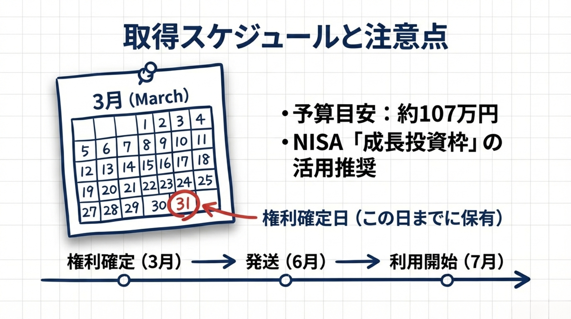 • 権利確定は3月末→ 証券口座に株を置く必要あり