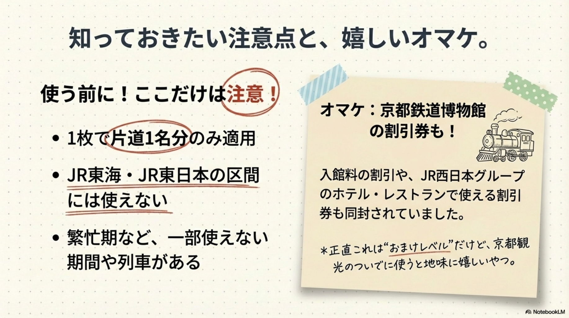 • 有効期間は1年間ですが、繁忙期や一部列車は対象外のケースあり
