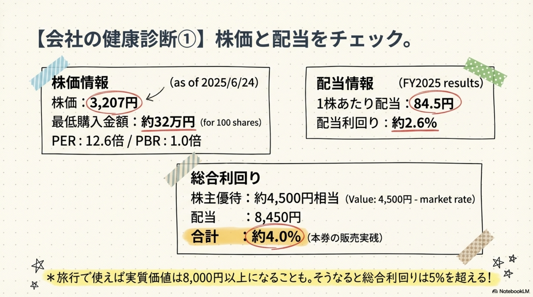 💡 “高配当ガチ勢”には物足りないが、“優待×旅行好き”には相性◎