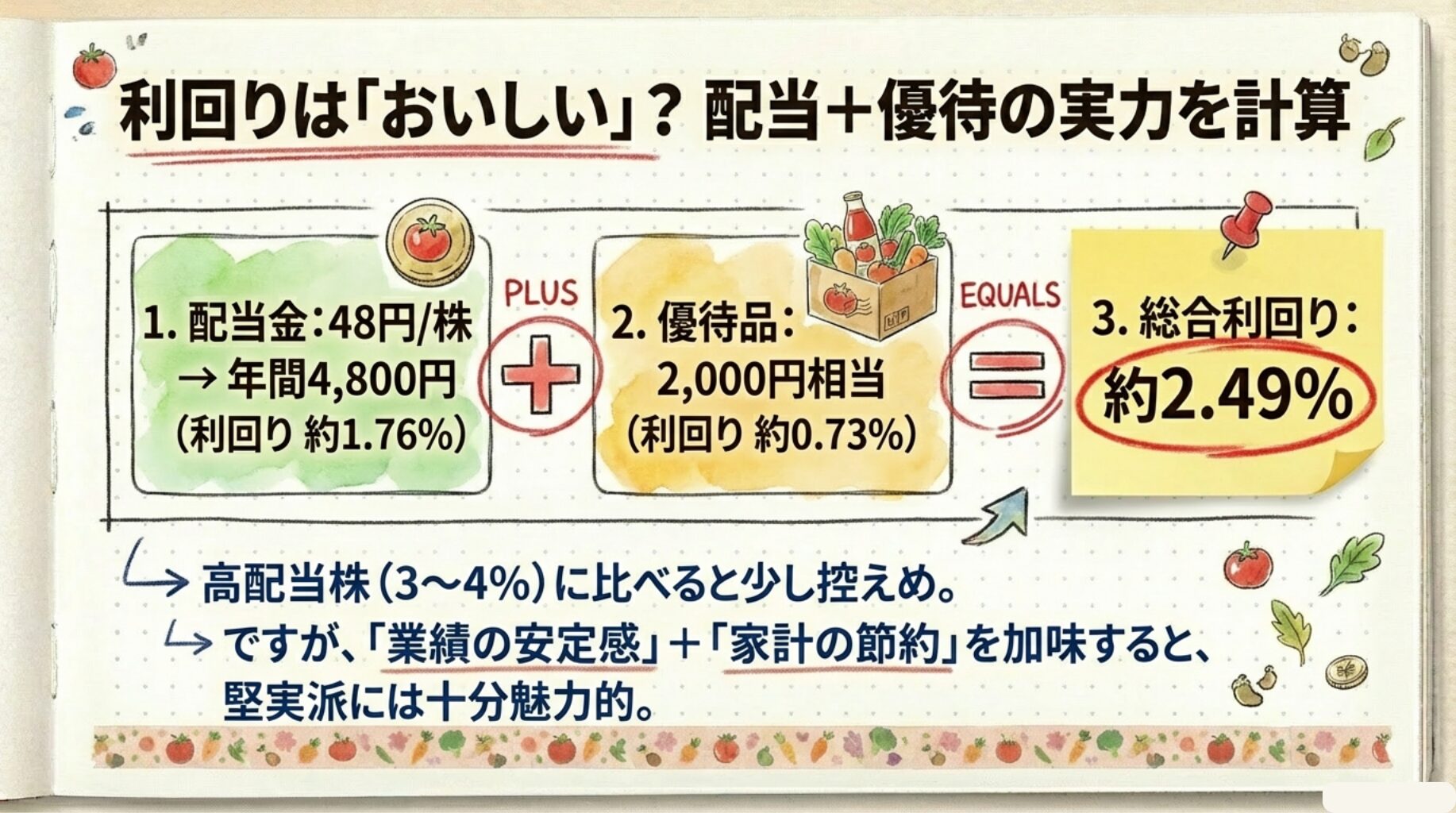 🔢 総合利回り約2.4〜2.5%(株価2,720円前後ベース)