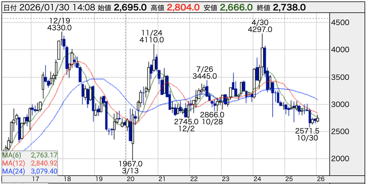 2,700円台(今)🟡 妥当水準。優待目的ならOK