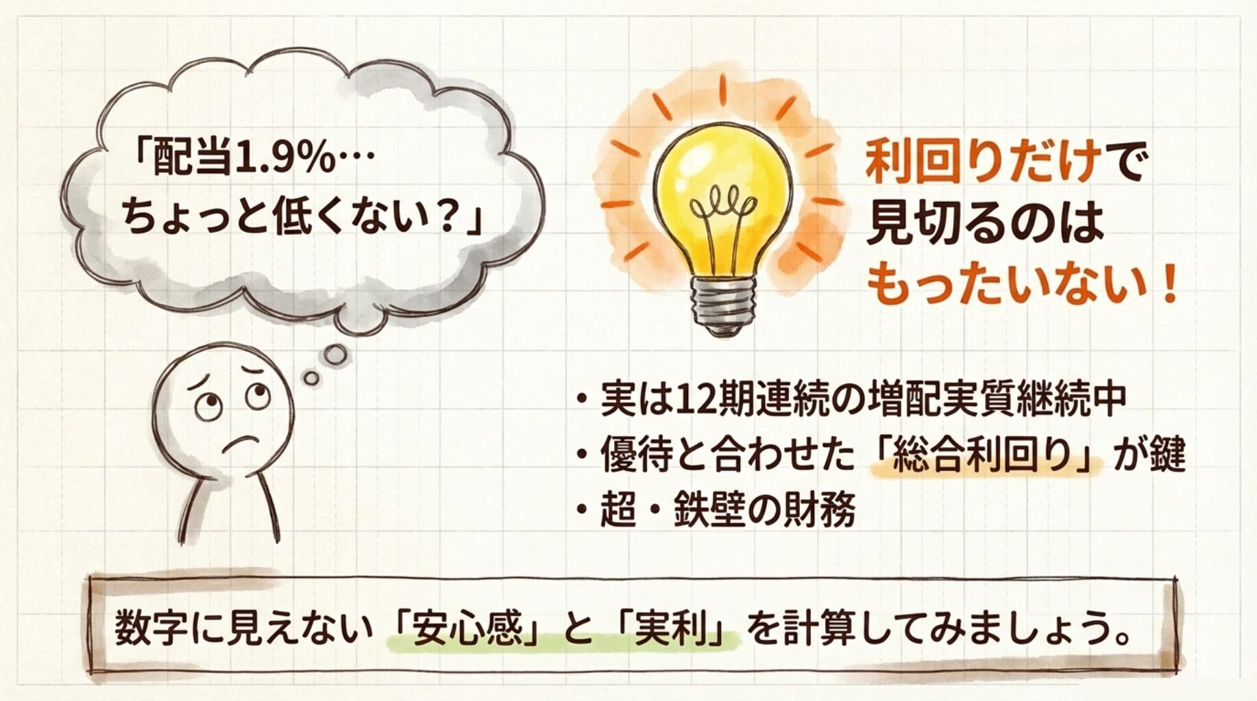 - 📦 優待と組み合わせた「総合利回り」では2.6%超(次項で解説)