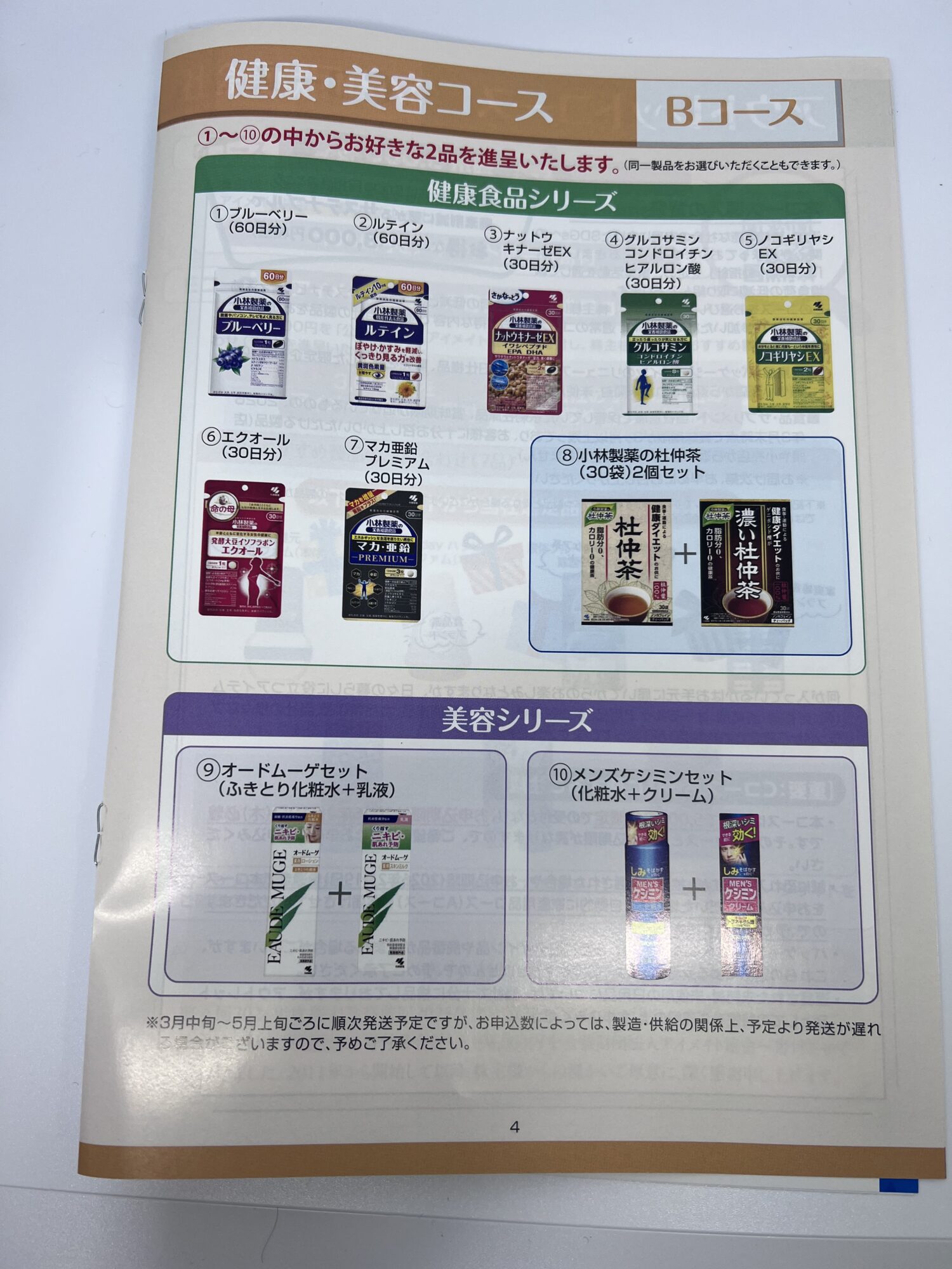 - サプリメントや健康茶、ボディケア製品などから2点を選択