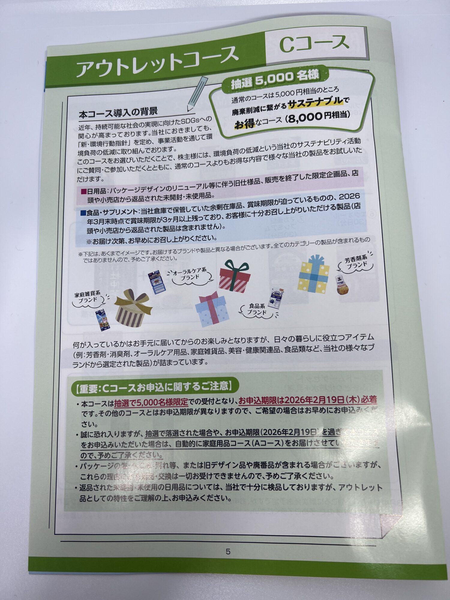 📦 アウトレットコース(C)──小林製薬の株主優待史上、初の“福袋系コース”です。