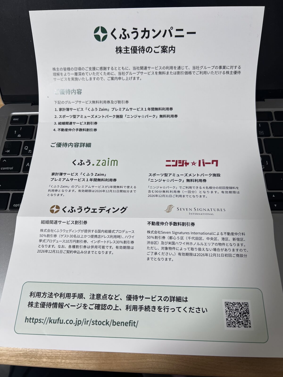 2025年も変わらず、くふうカンパニーの優待はインパクト抜群。
