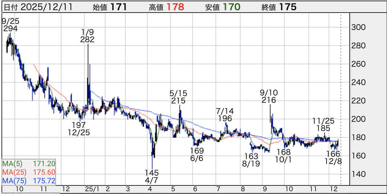 - 売上高:2023年→204億円 → 2025年→141億円へ【3期連続の減収】
