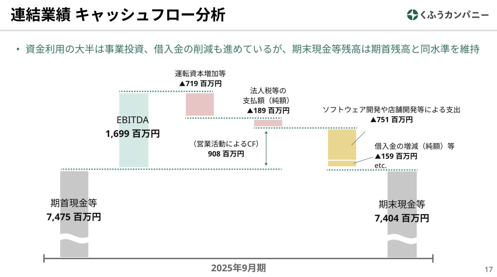 - 営業キャッシュフロー:黒字に転換(+0.9億円)