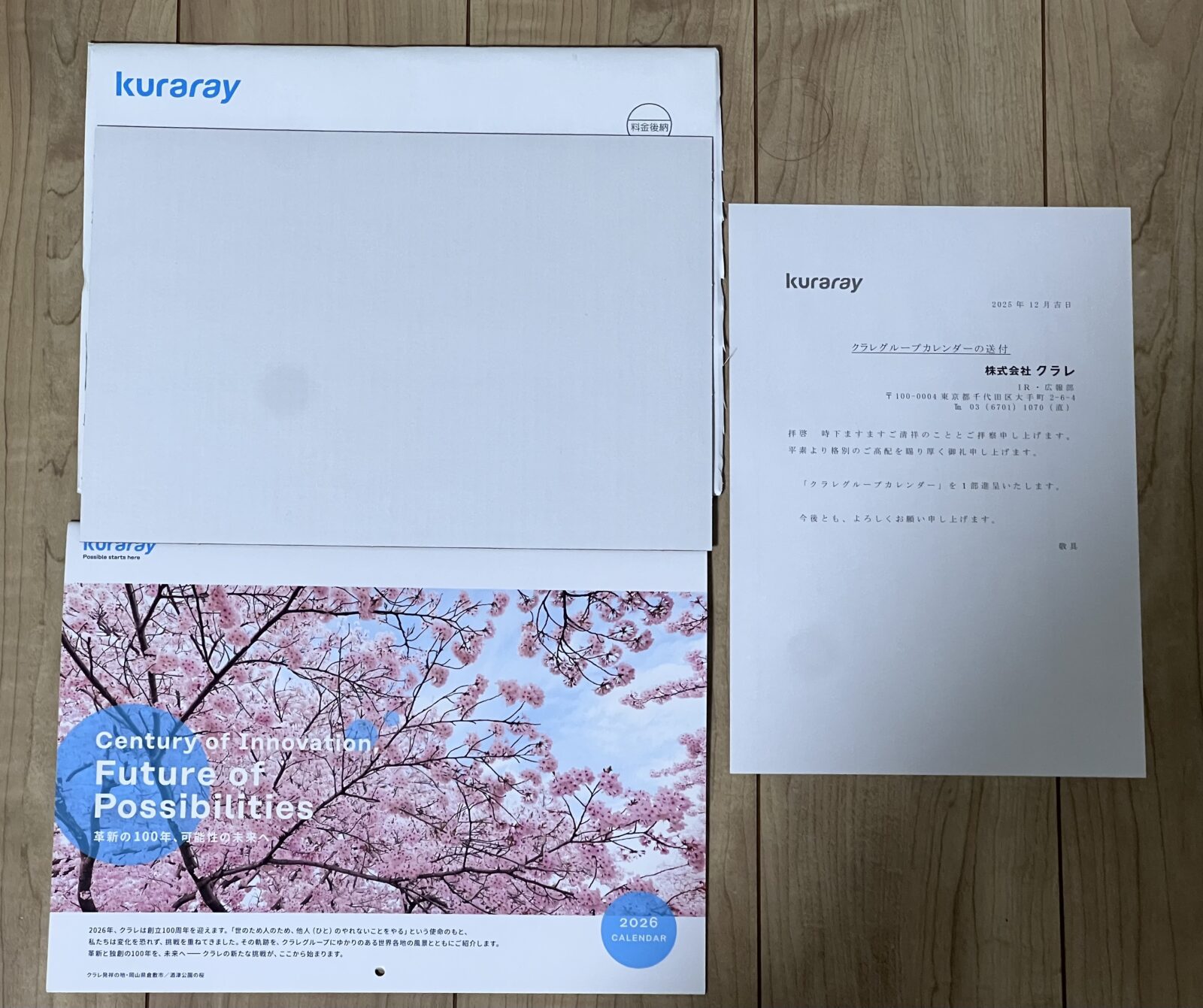 クラレ(Kuraray)から株主優待の2026年版カレンダーが普通郵便でポストに届きました📮