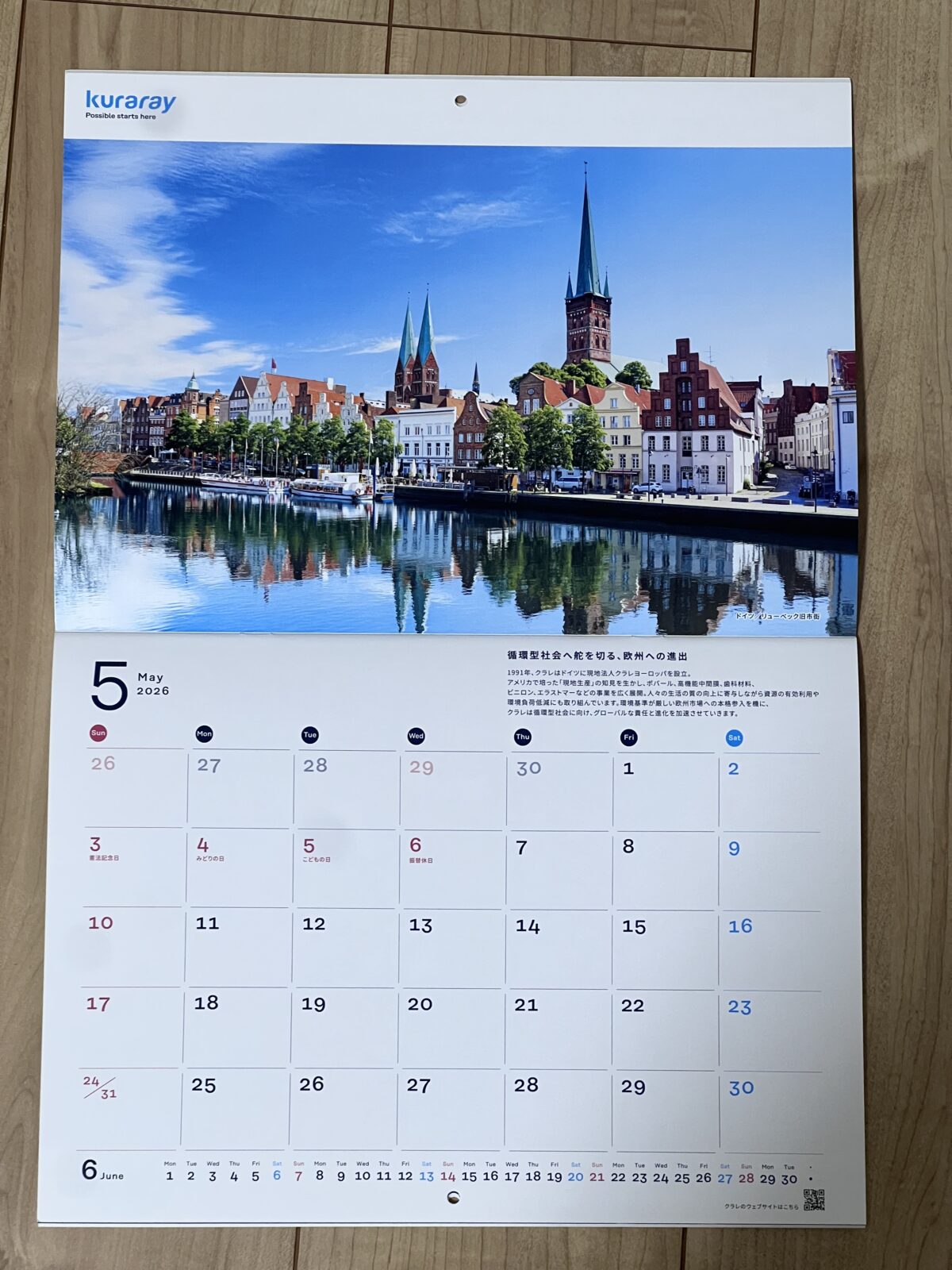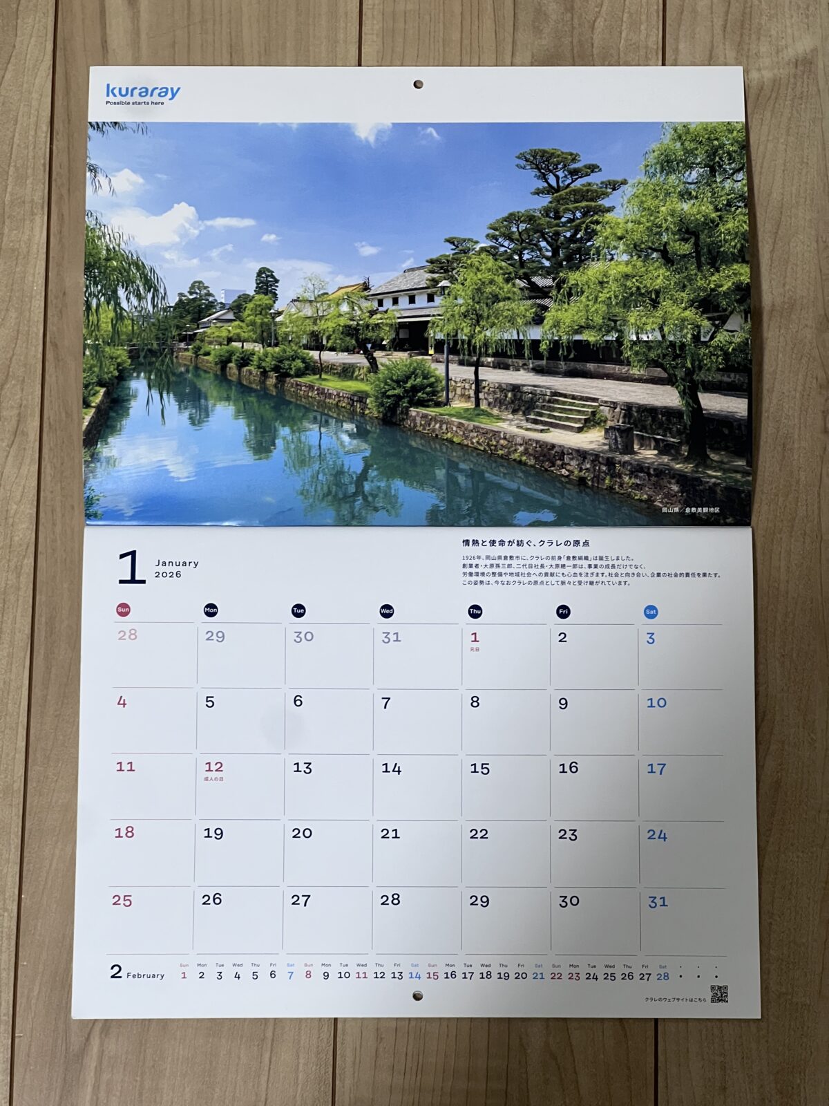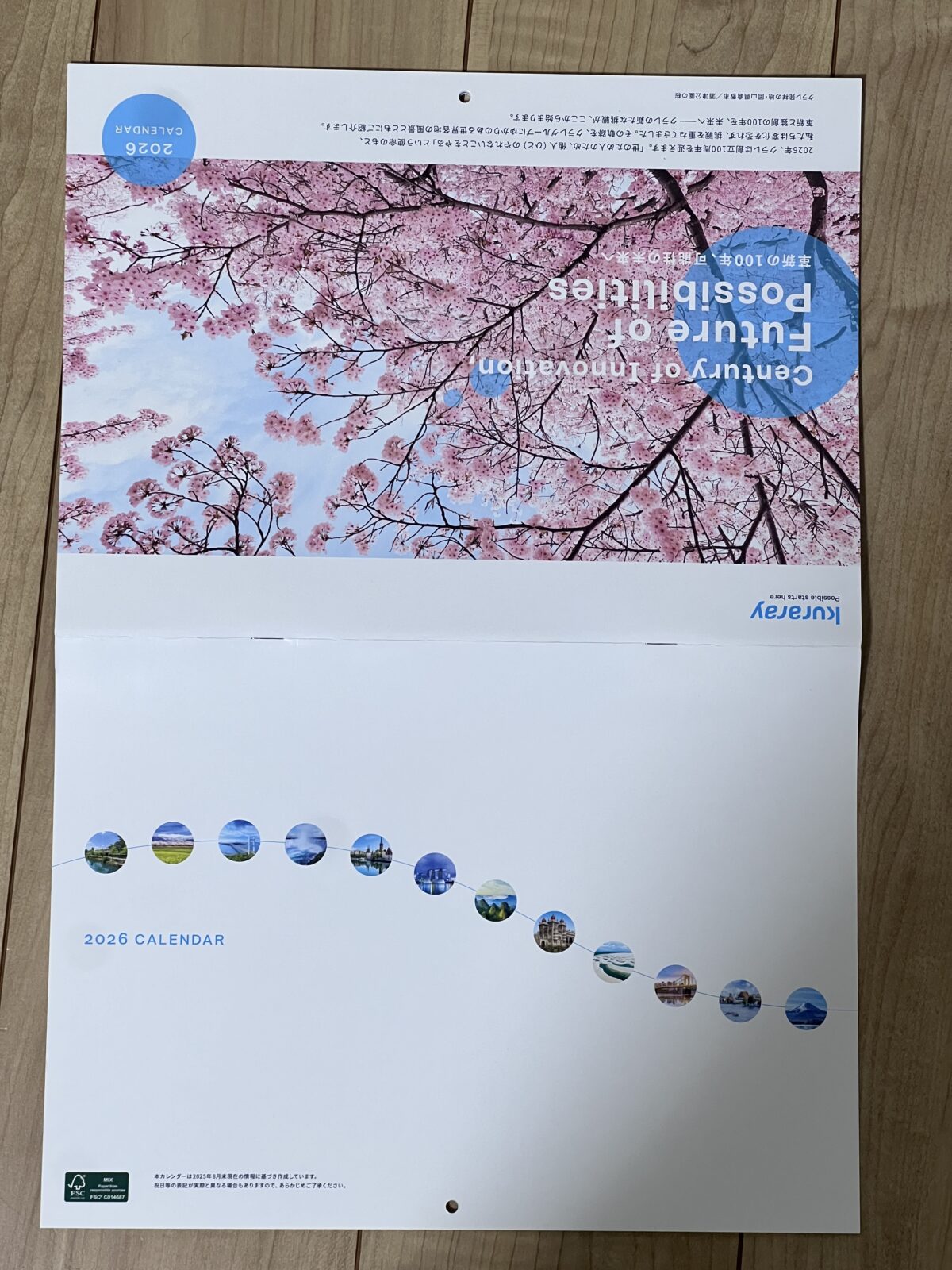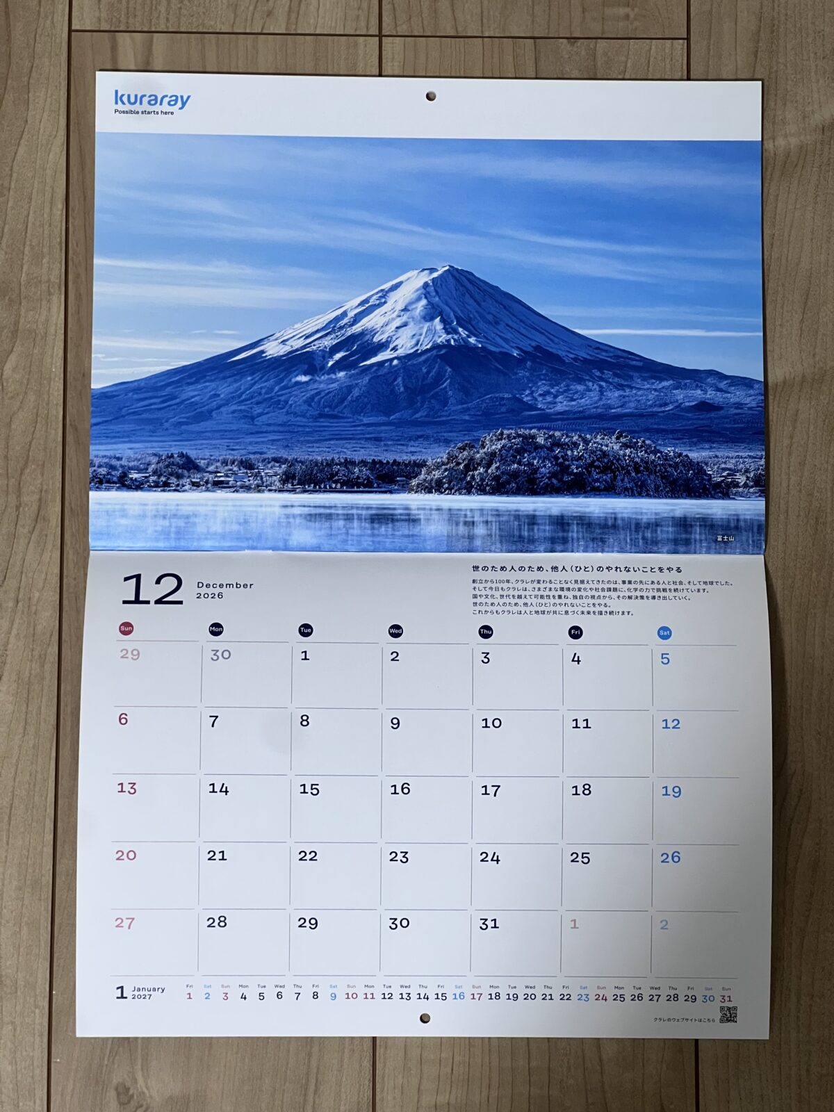 ここからは、実際に届いた クラレの2026年カレンダー本体 を、