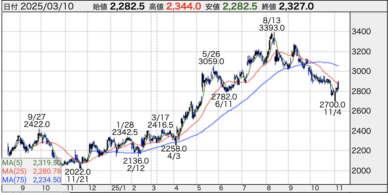 - 🔁現在(2025年11月):2,900円前後で推移中