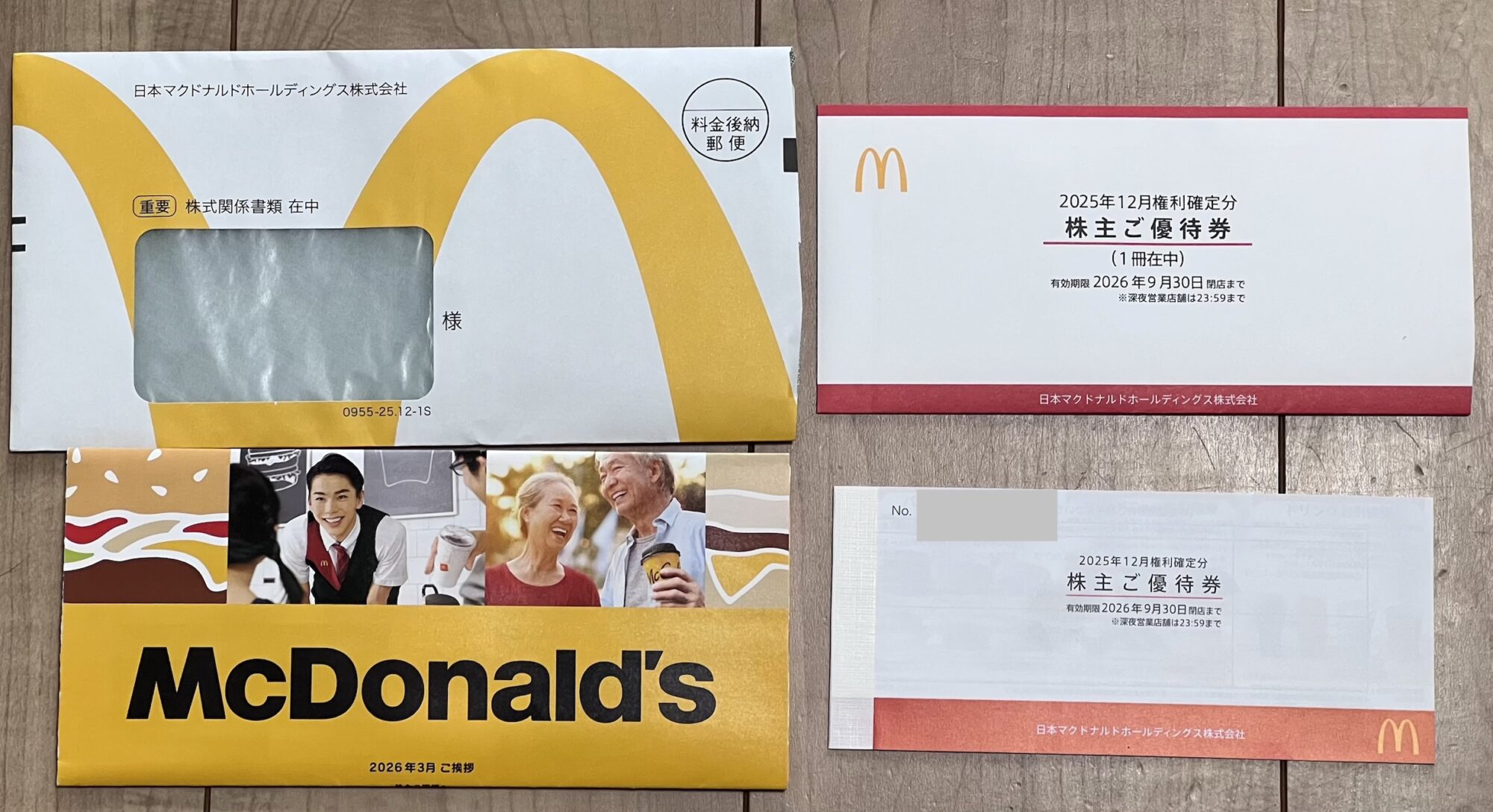 2025年12月権利確定分のマクドナルド株主優待が、わが家にも届きました!