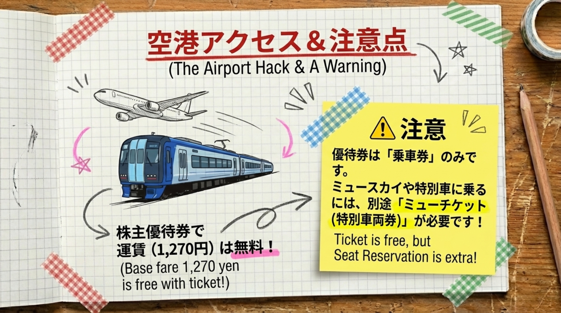 → 名鉄の特急「ミュースカイ」でセントレアに向かうなら、乗車券の価値は1,200円超。