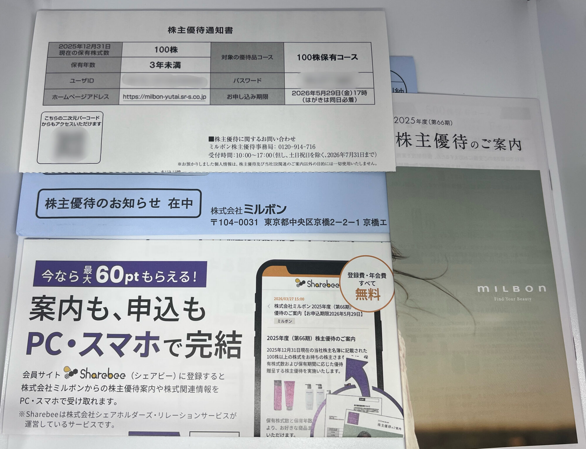 ミルボン(4919)から、2025年度(第66期)の株主優待案内が届きました📬