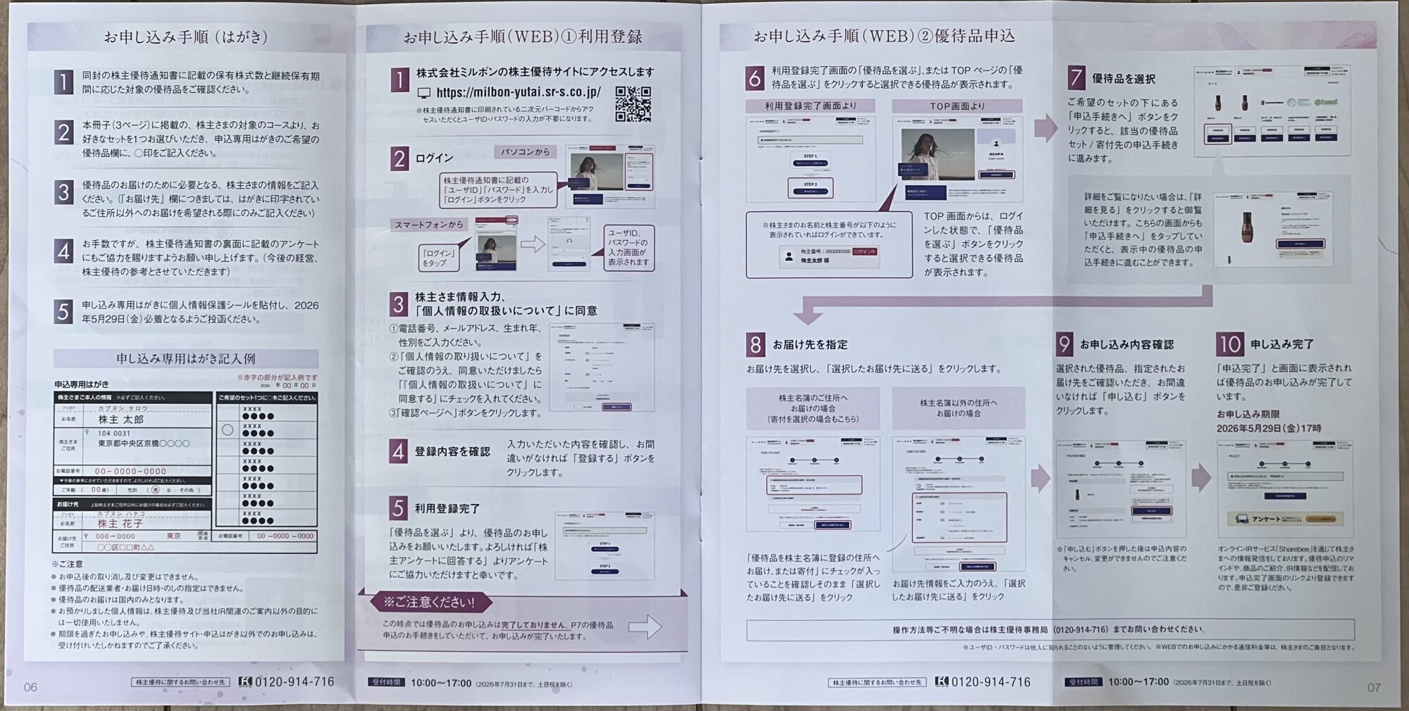 - 株主優待通知書に記載のURLにアクセス(https://milbon-yutai.sr-s.co.jp/)