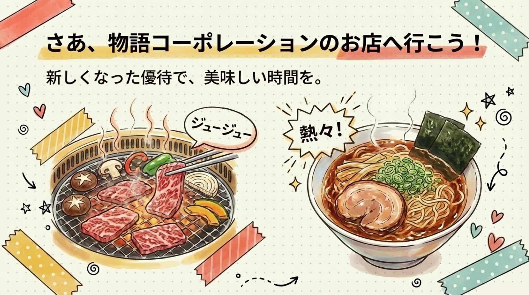 「焼肉きんぐ」「丸源ラーメン」などで使える物語コーポレーション(3097)の株主優待が、