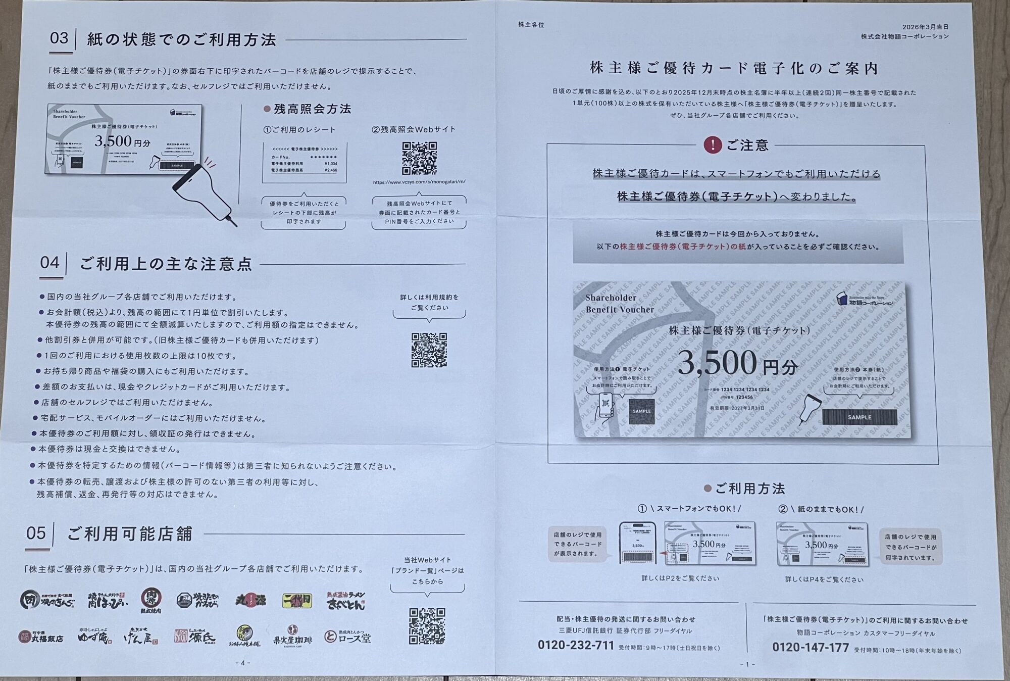 「株主様ご優待カードは今回から入っていません」と案内に明記されています。紙の電子チケットが正式な優待券です。
