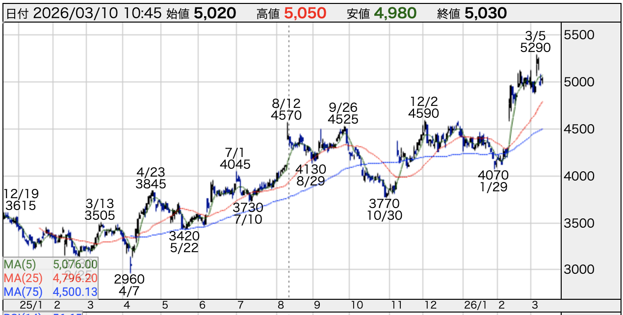 | 株価(2026年3月6日終値) | 5,240円 |