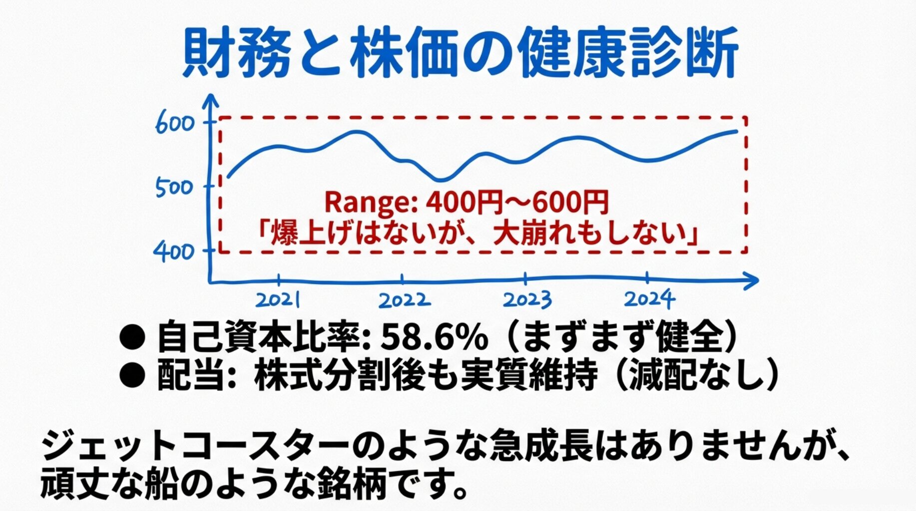 A:📉 株価はここ数年、400〜600円台で横ばい。