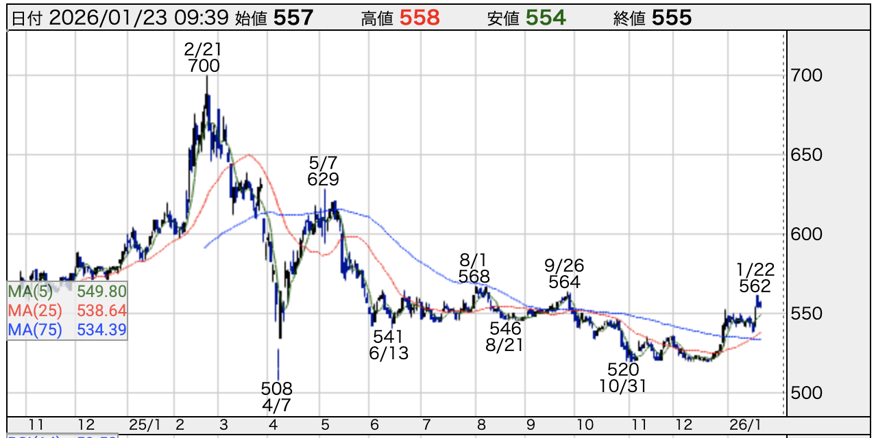• 2026年1月時点の株価:554円