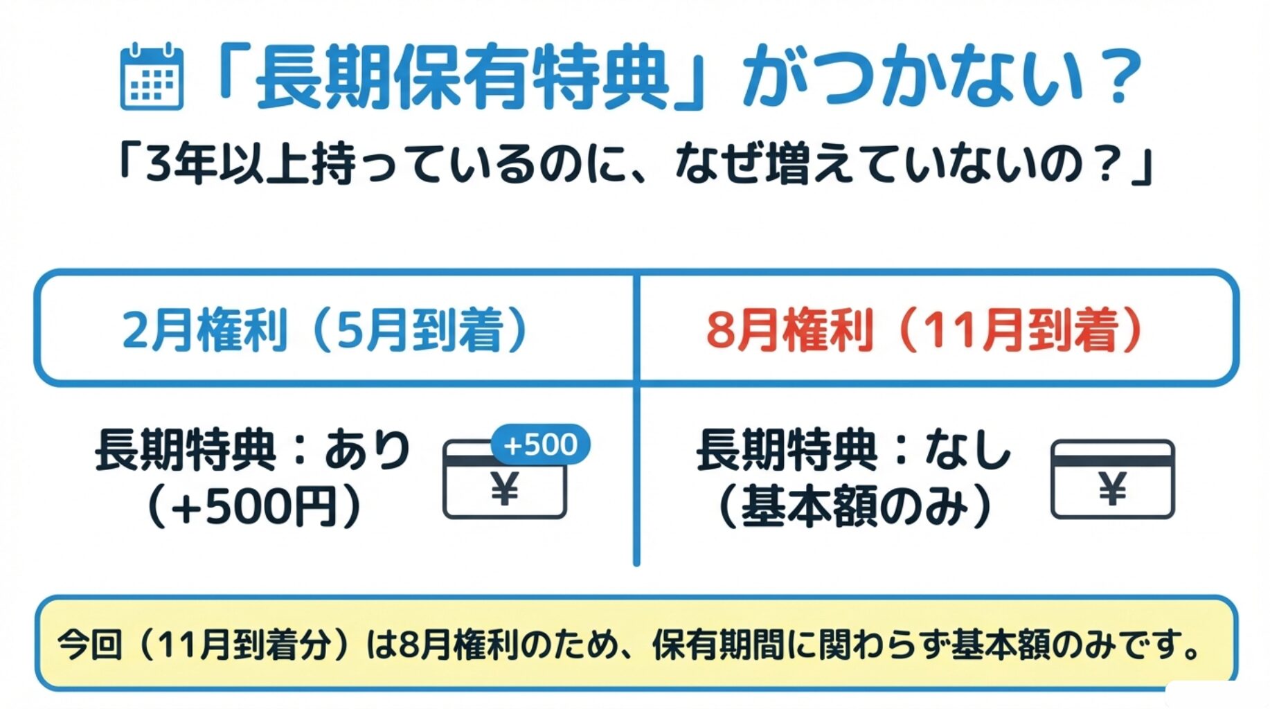 • 🗓 2月・8月の違いと長期保有特典の仕組み