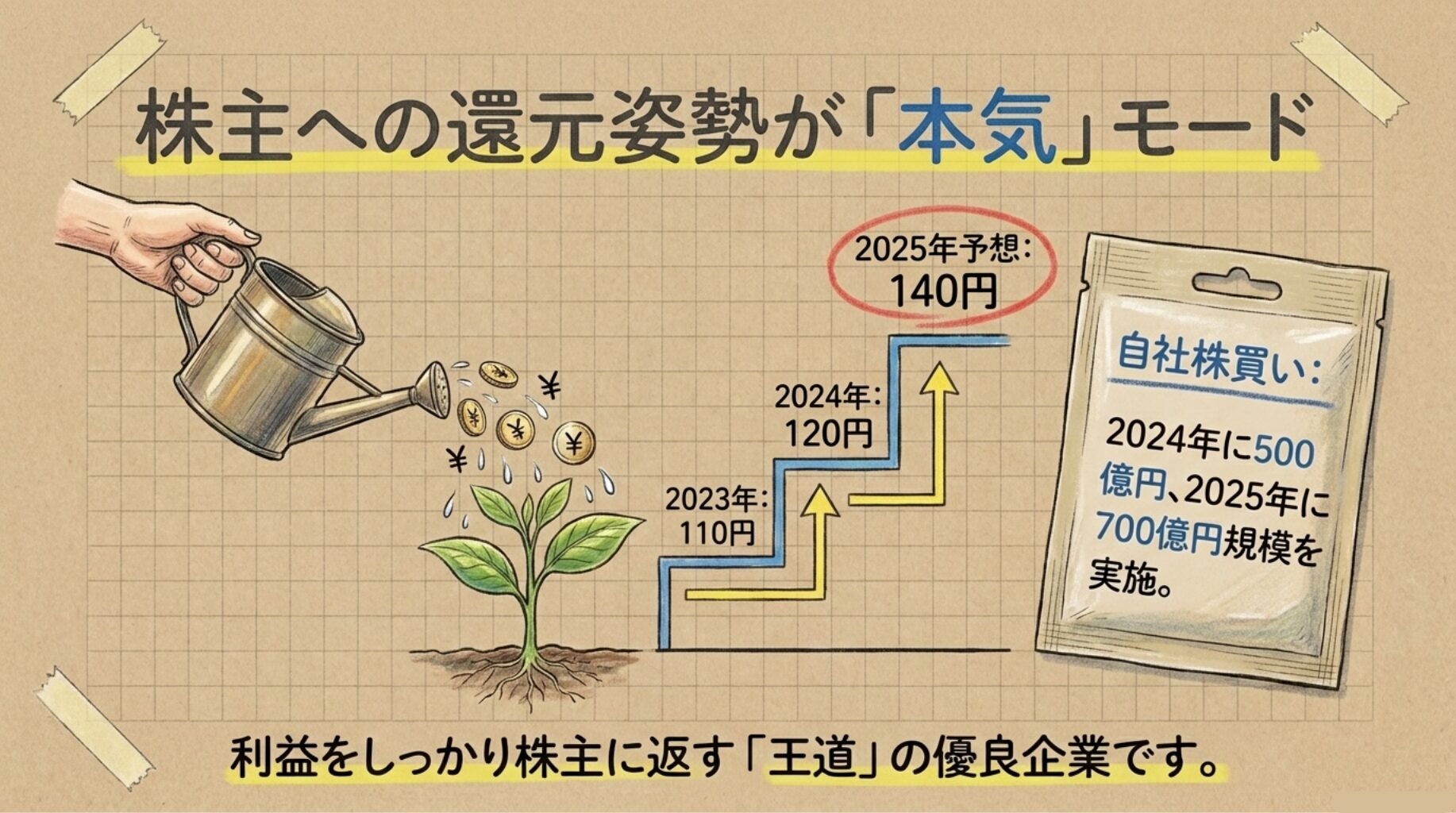 🔸 積極的なM&Aと自社株買いで株主還元を強化