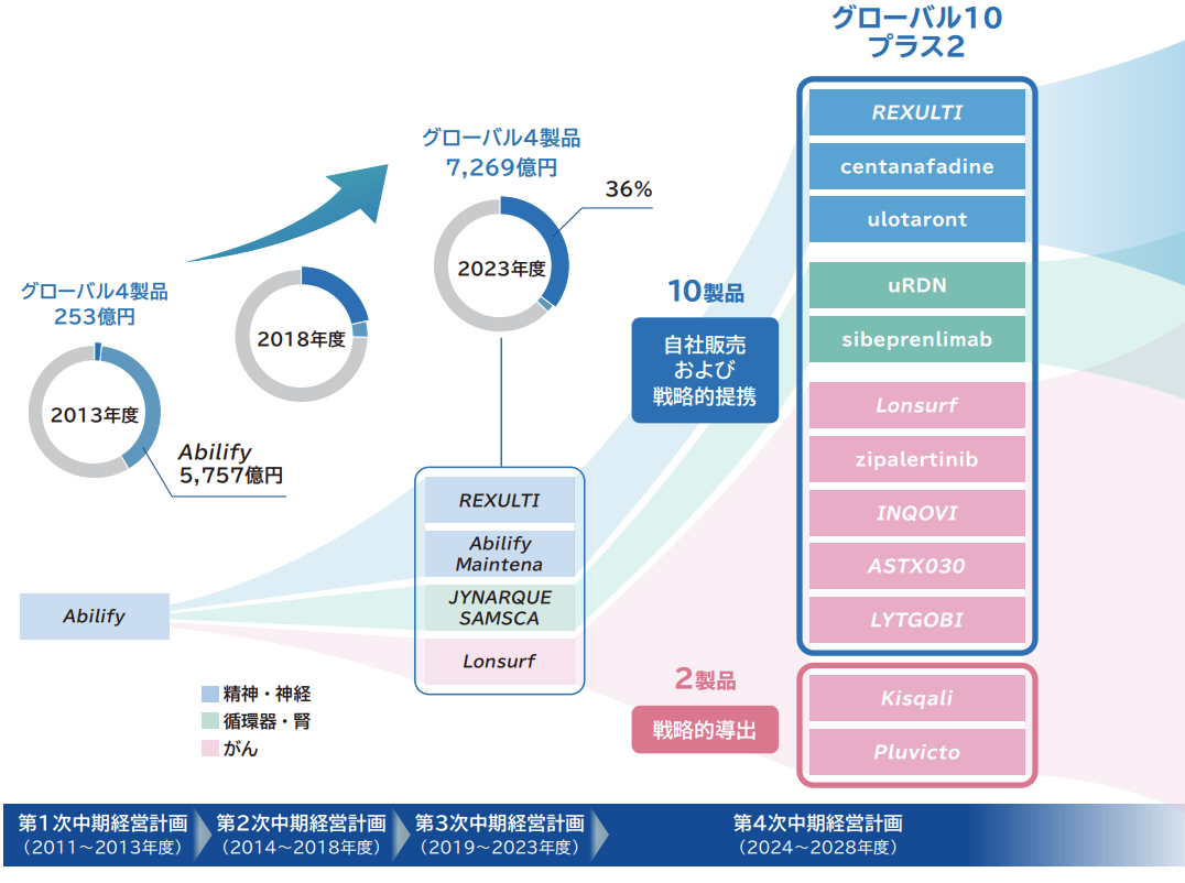 アビリファイやレキサルティといった精神疾患系の薬がヒットしており、これが大きな収益源となっています。