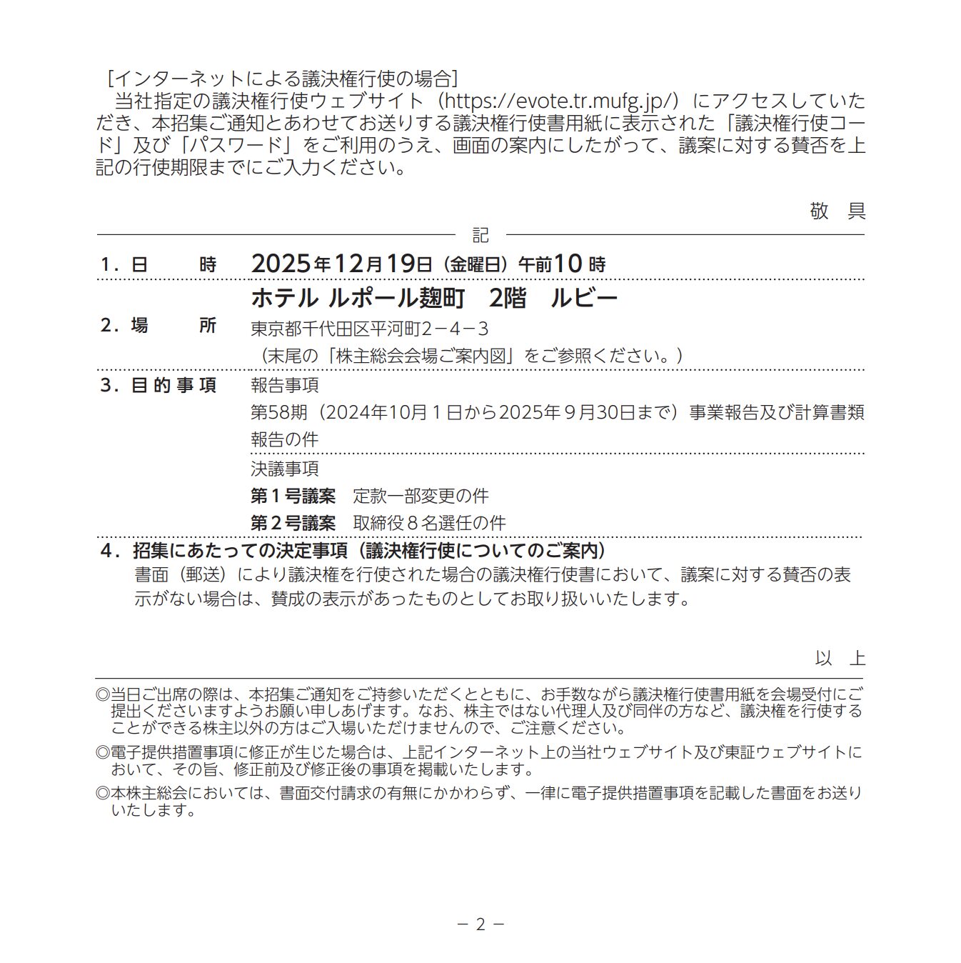 → 実際に何もなかった - 招集通知に特に記載なし