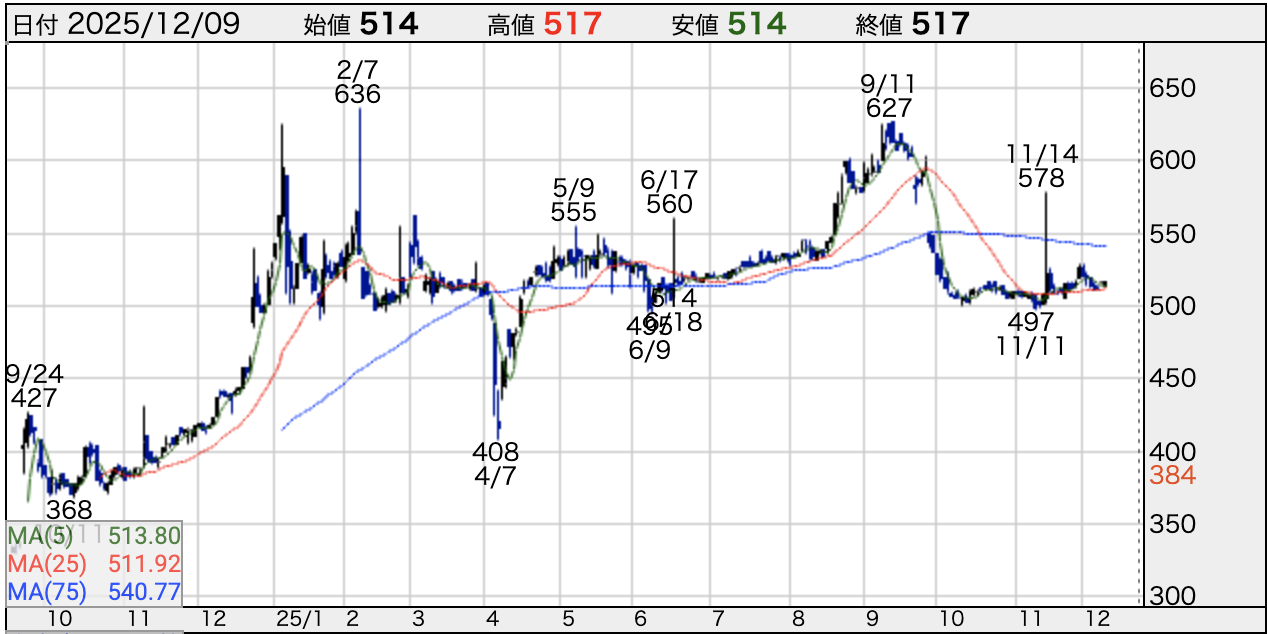 500円台の小型株としてはそこまで見劣りする水準ではありません。