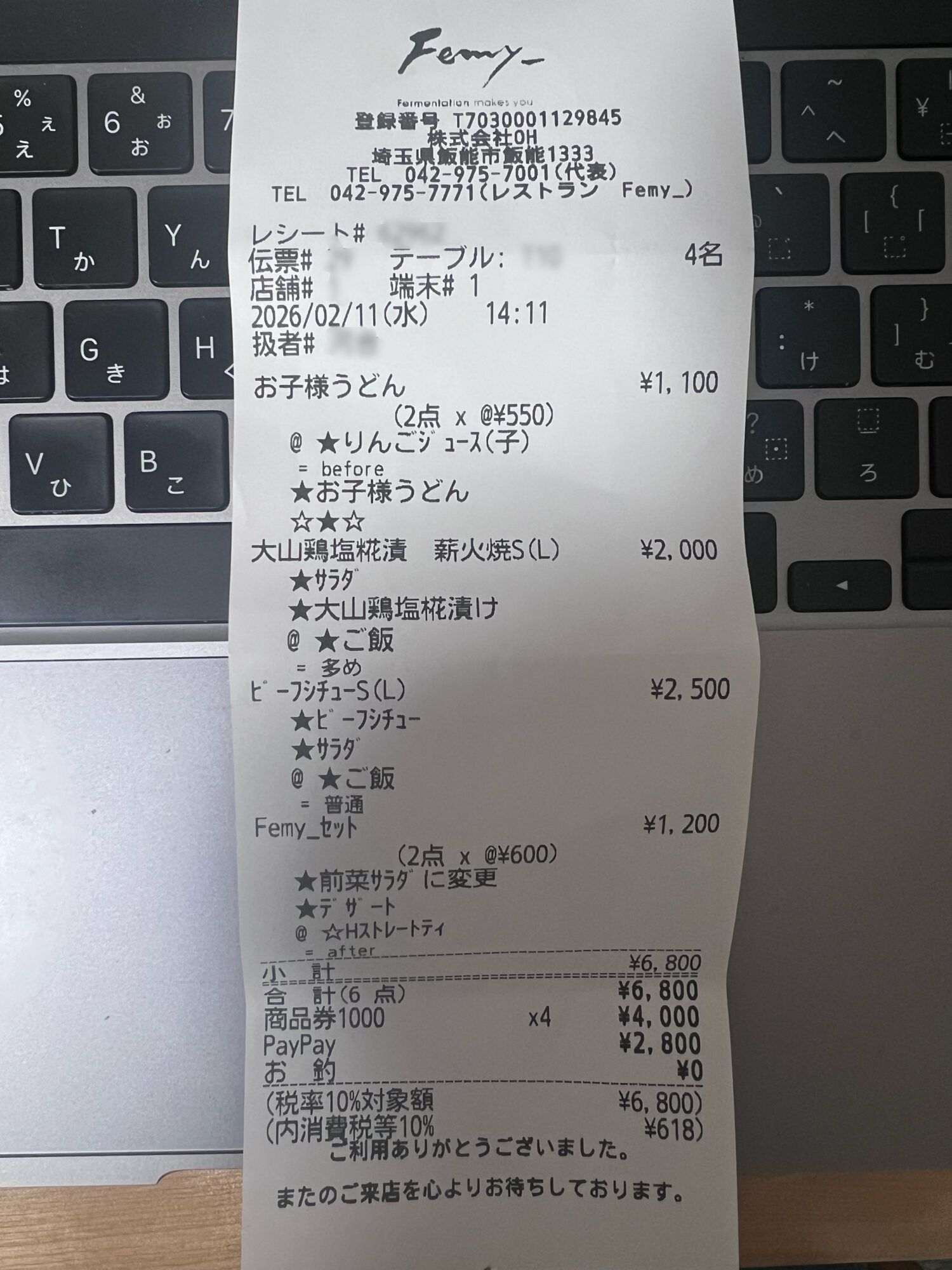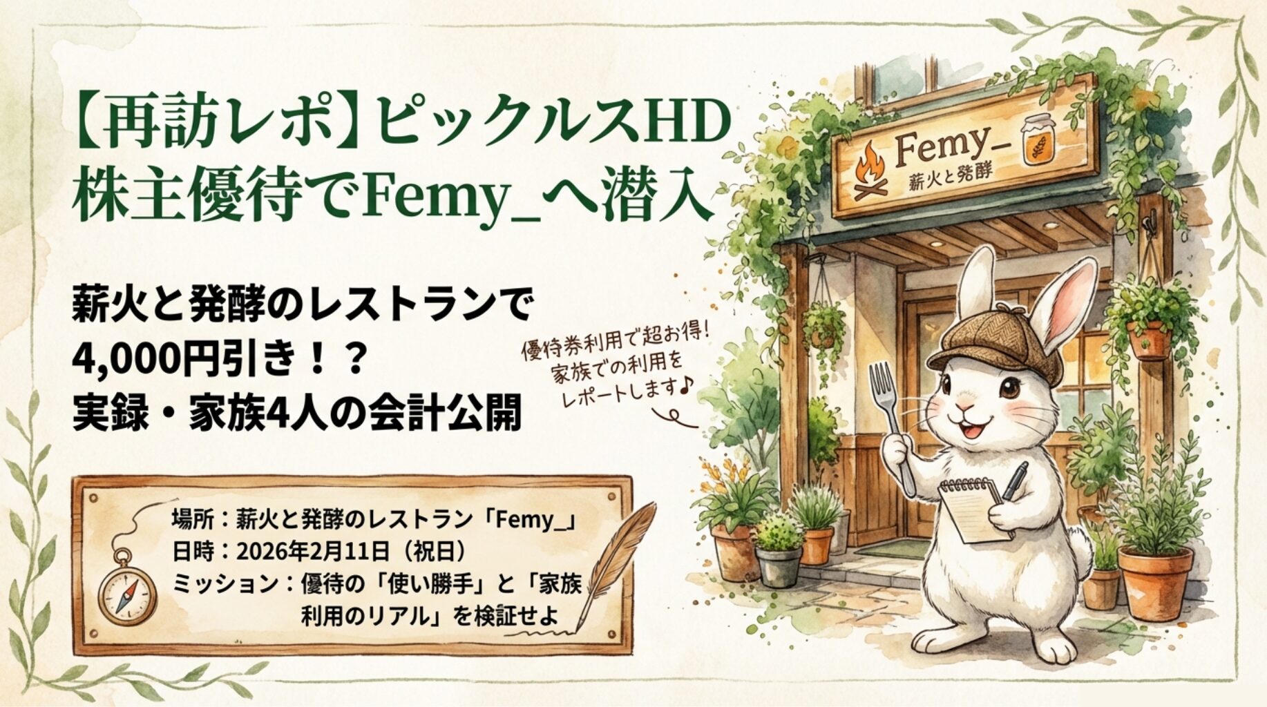 【再訪レポ】ピックルスHD株主優待でFemy_へ|4,000円分使って実質2,800円のリアル会計公開