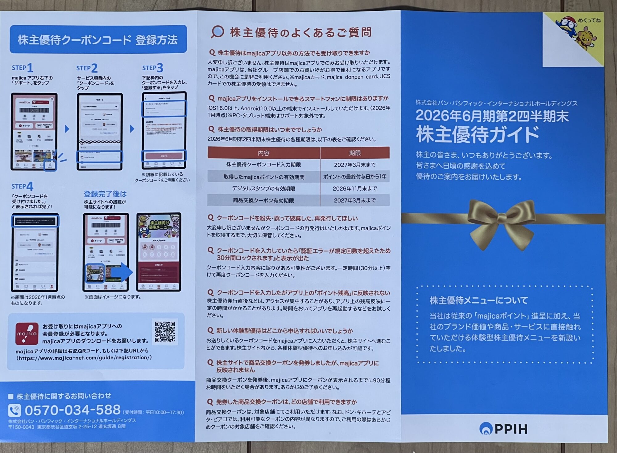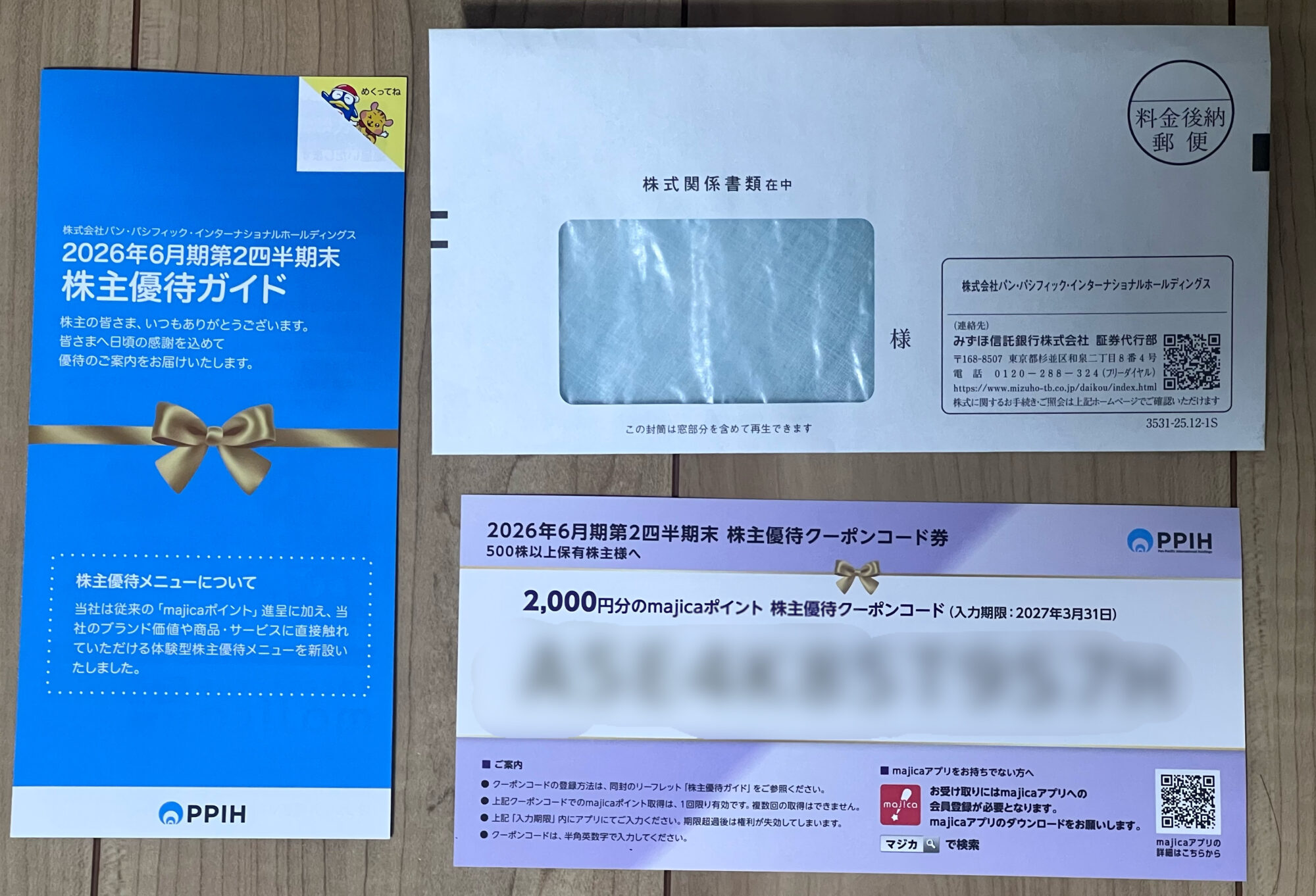 今年もドン・キホーテでおなじみ、PPIH(パンパシフィックインターナショナルホールディングス)から株主優待が届きました!