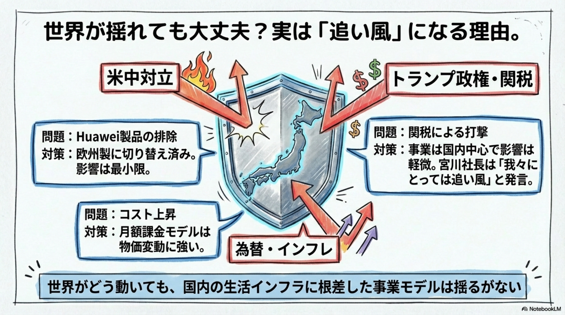 💡 世界が揺れても“国内通信事業”にド直結の影響はほぼない