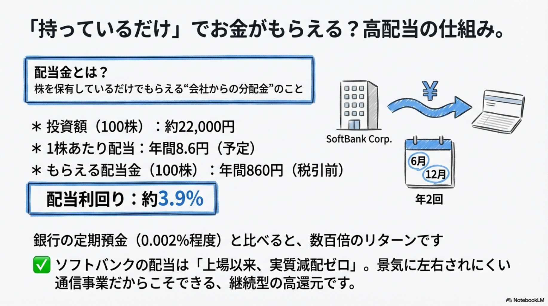 ──いえいえ、ソフトバンク株は“持ってるだけ”でお金が入ってきます📥✨