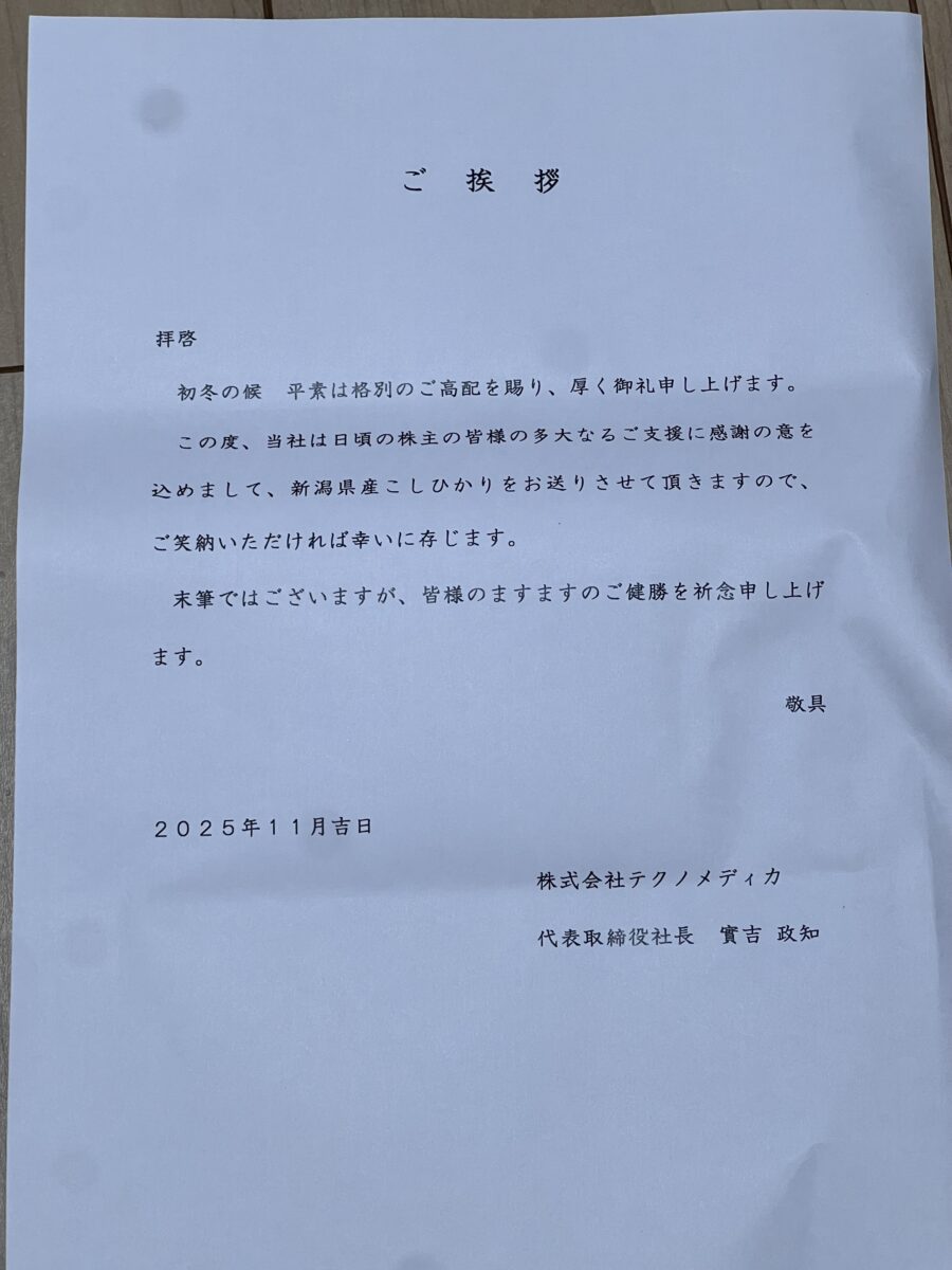 テクノメディカ(6678)の株主優待、いかがでしたか?