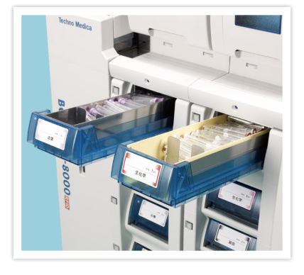 これは、採血前に患者ごとにバーコードで管理された試験管を自動で準備してくれる装置で、病院の検査業務を効率化する必須アイテム。