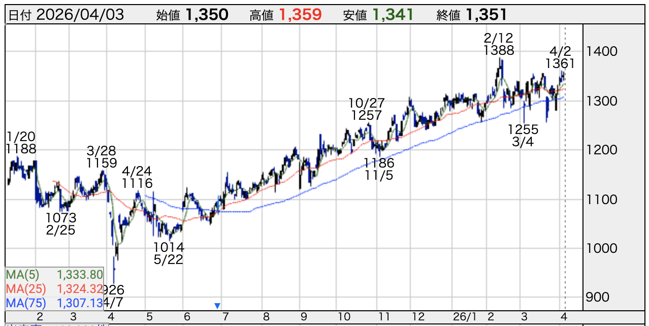 - 株価:1,351円 / 最低投資額:約135,100円(100株)