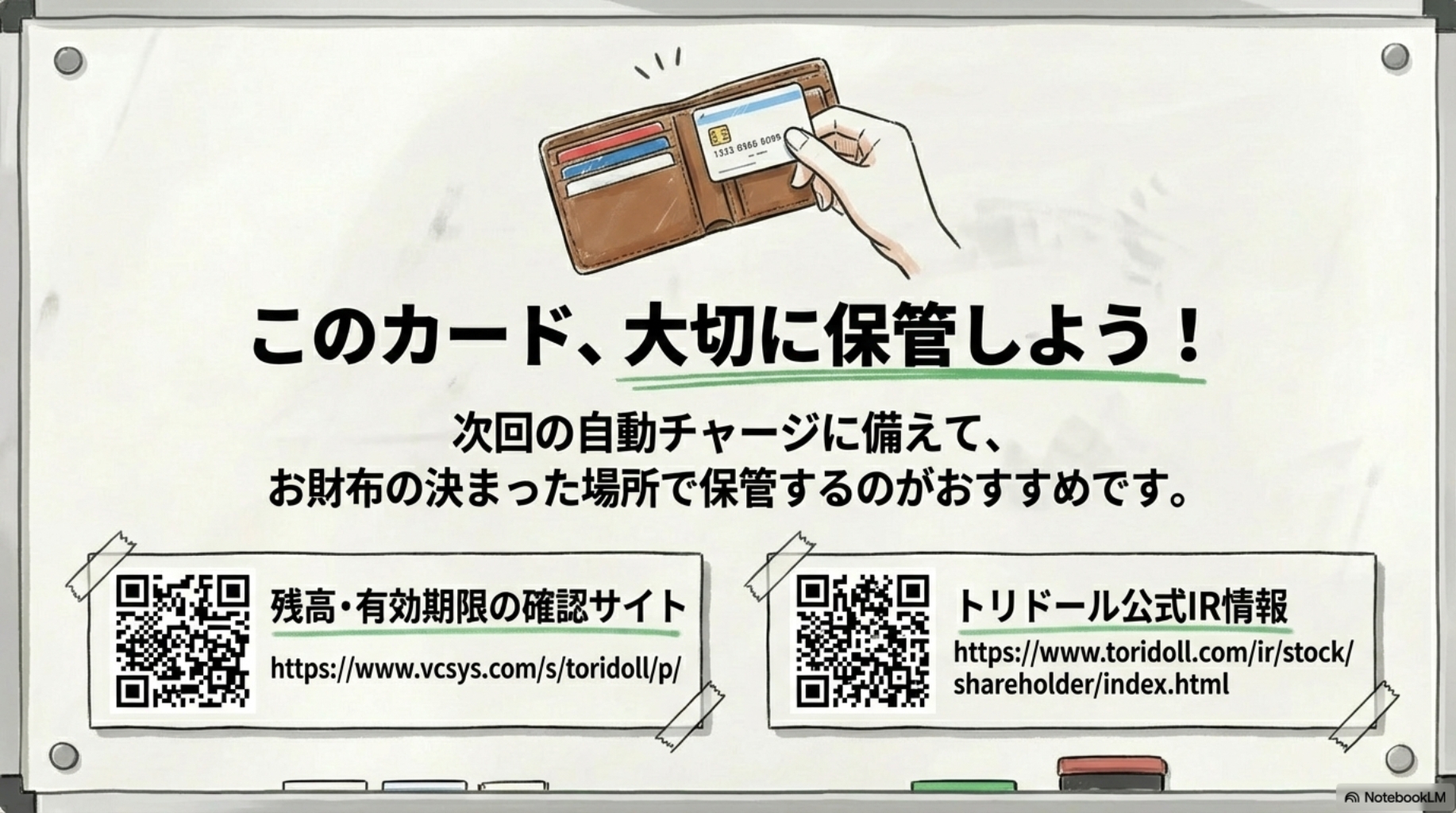 💡「前のカードが0円になったから…」と捨てず、次回以降のためにも必ず保管を。
