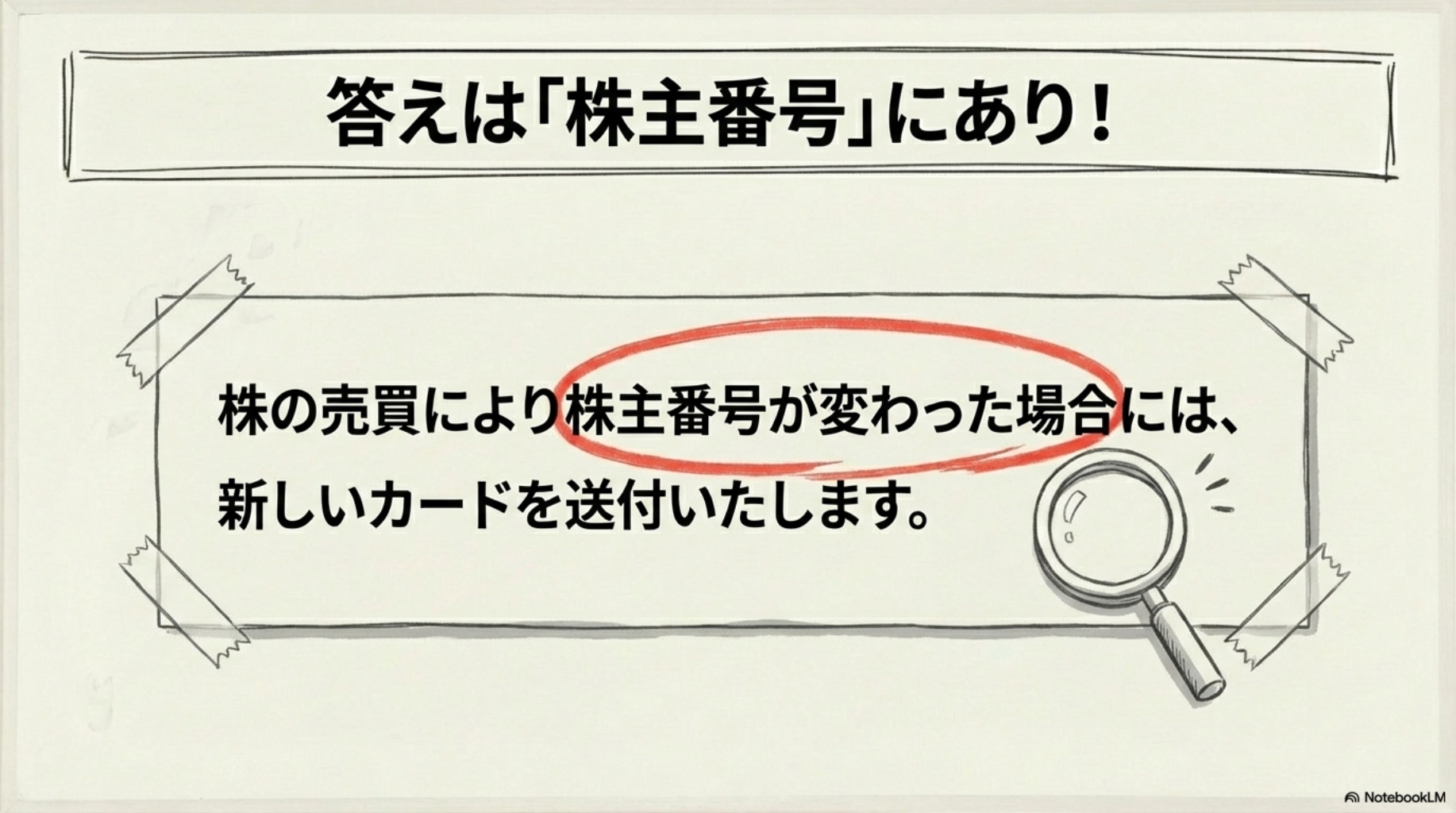 「毎回ちゃんと株持ってたのに、なんで新しいカードが届いたの?」