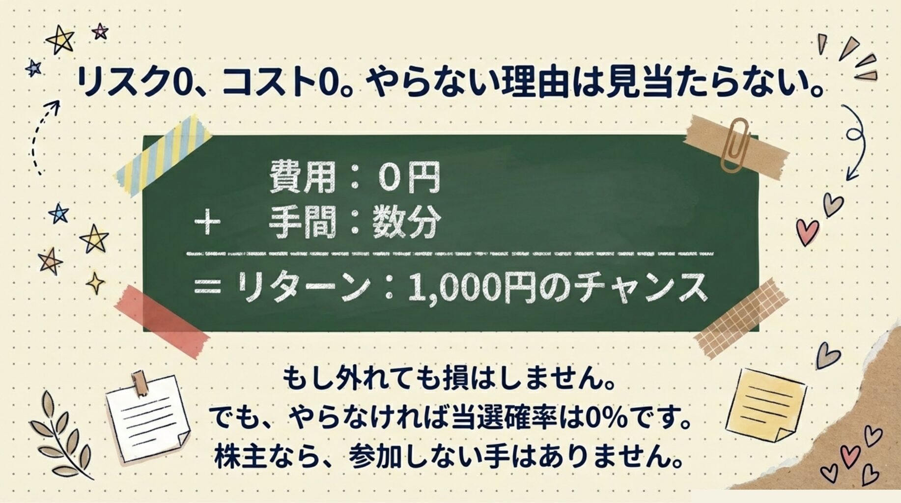 それでも「株主だけがもらえる可能性のある金券」という点では、