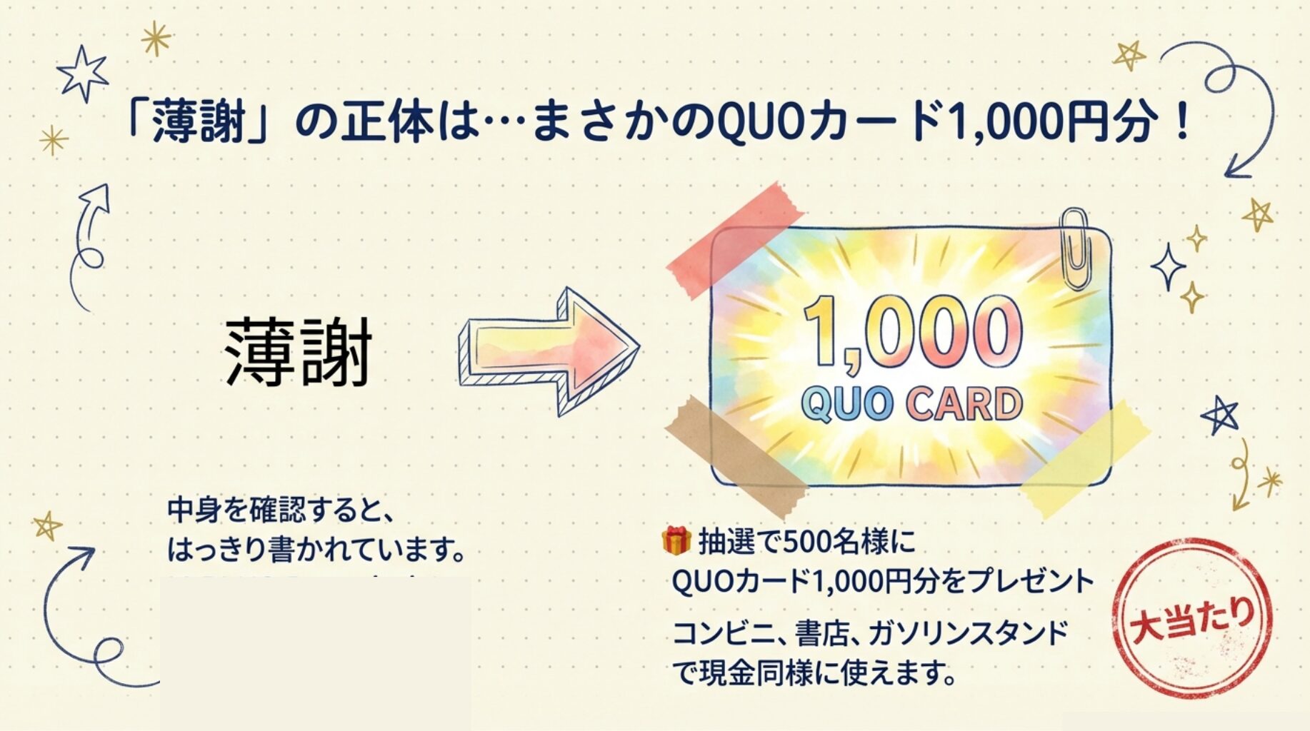 ✅ 抽選とはいえ、QUOカード1,000円のチャンスあり