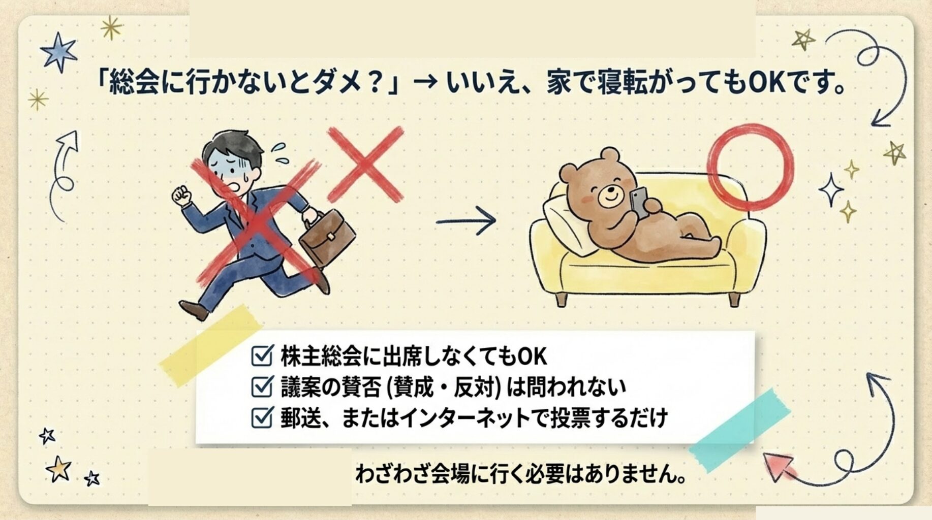 ✅ 株主総会に出席しなくてOK