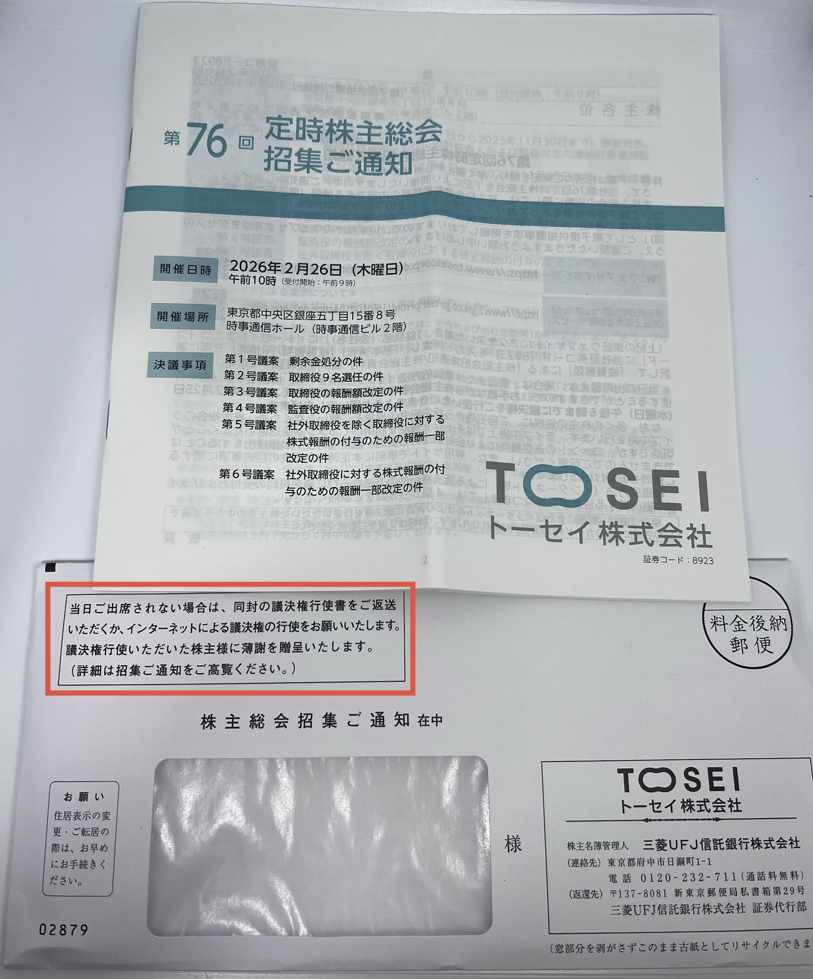 トーセイから株主総会招集通知が届いた【見逃し厳禁】