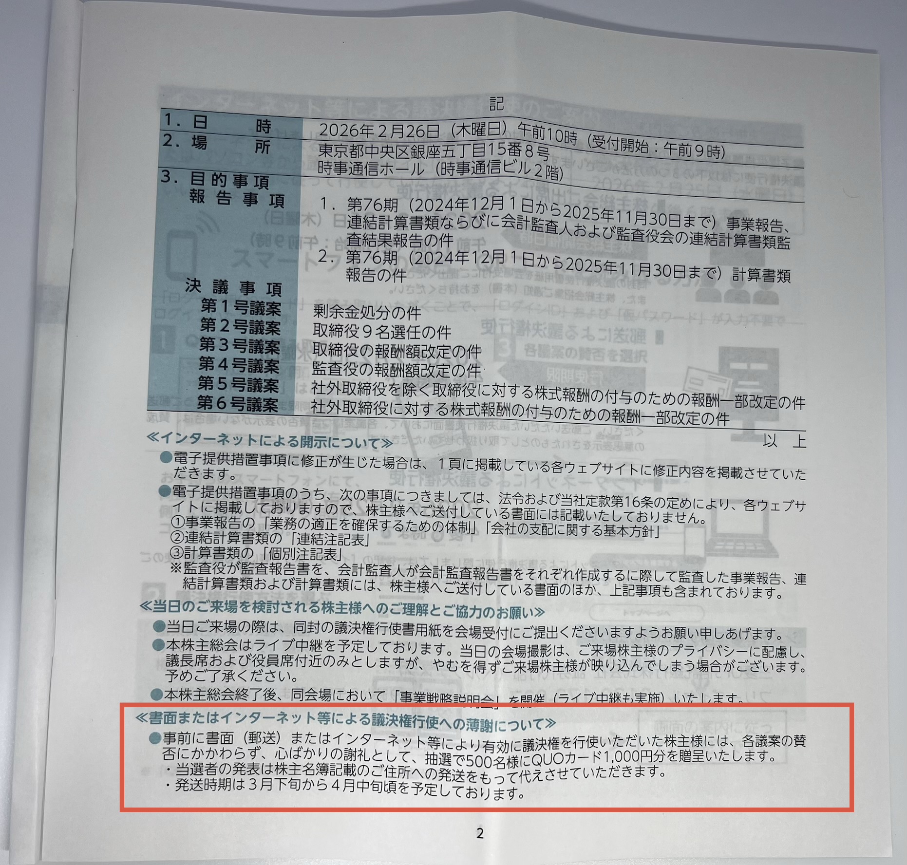 招集通知の2頁に、ひっそりと書かれているからです。