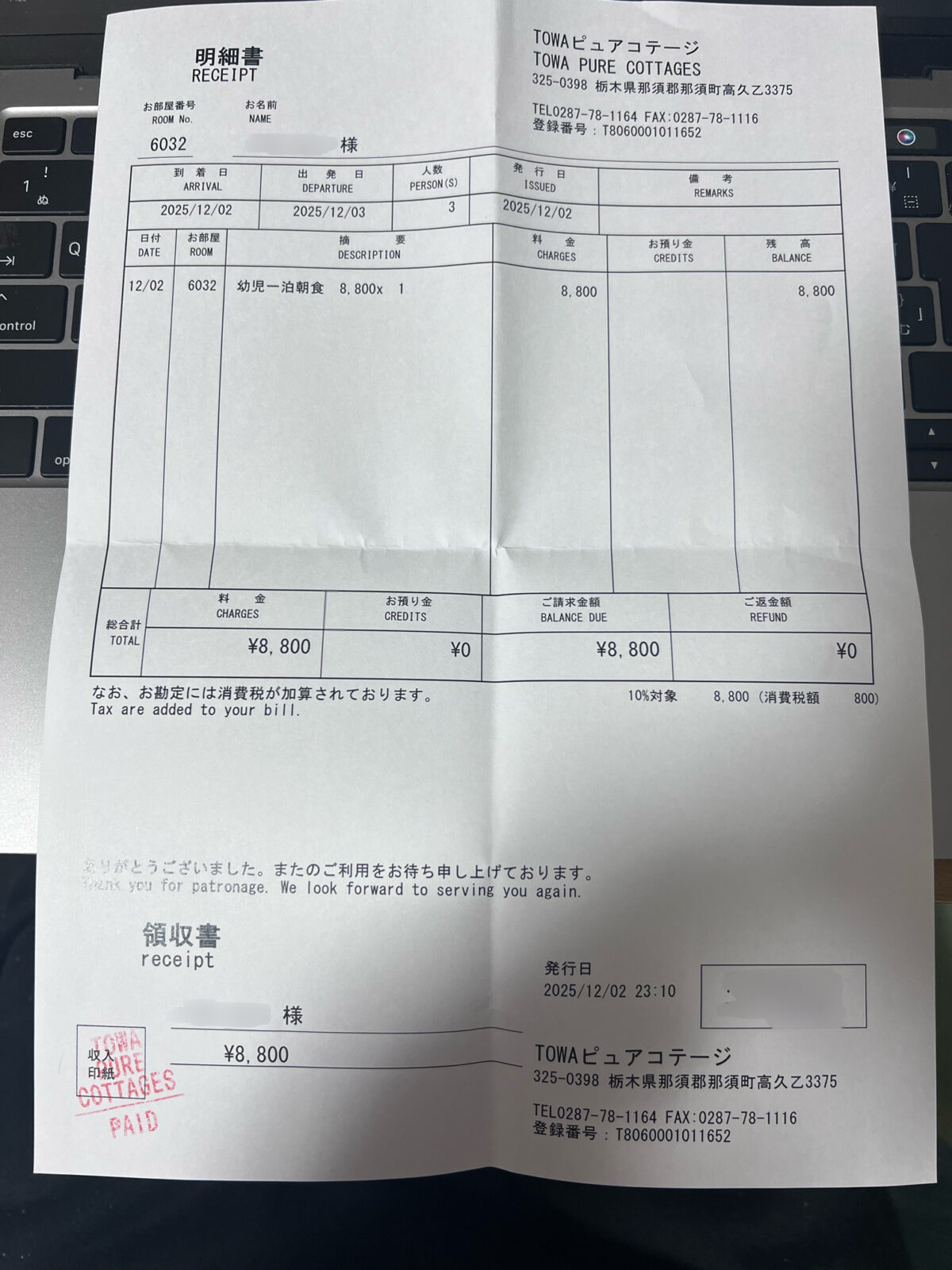 で、実際に TOWAピュアコテージの株主優待を使って宿泊してきました。